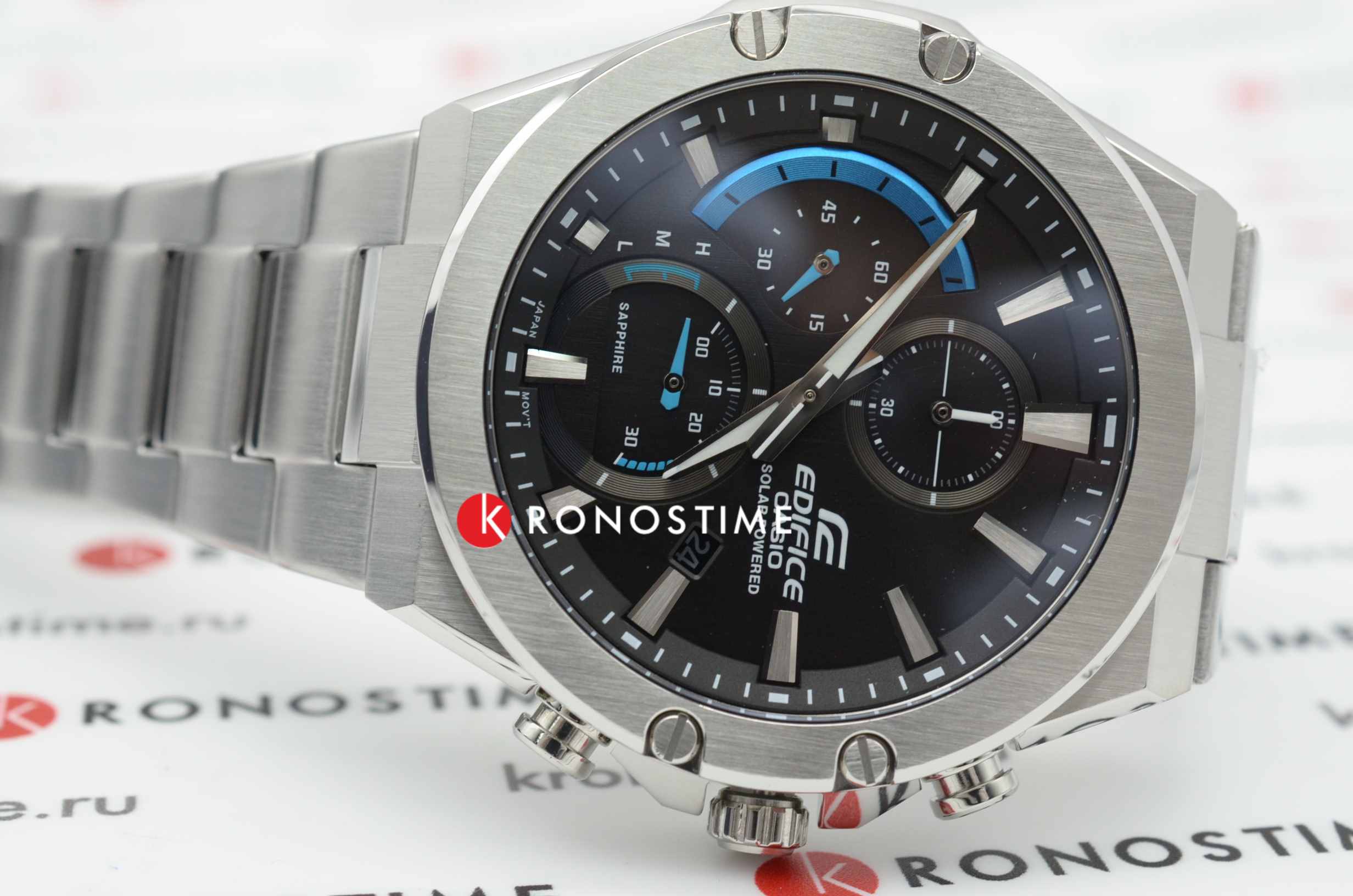 Наручные часы в серебристом исполнении привлекают контрастными голубыми деталями и лаконичным оформлением. Помогут идеально дополнить образ на каждый день. Аксессуар стал обладателем ультратонкого корпуса, по сравнению с большинством представителей Edifice – 9,9 мм. Модель изготовлена из стали 316L, материал устойчив к коррозии и механическим воздействиям. Японский кварцевый механизм обеспечивает питанием солнечная батарейка . Указатель минутной стрелки хронографаХронографФункция позволяет измерять отрезки времени с особой точностью: часы, минуты, секунды. Верным признаком хронографа является наличие на циферблате 3 дополнительных окошек-счётчиков. на секторной части циферблата. Сапфировое стекло с антибликовым покрытием. Водостойкость 100 метров. Люминесцентная подсветкаЛюминесцентное покрытиеПозволяет считывать показания времени в темноте. Производители наносят на стрелки, часовые индексы, безель или поверхность циферблата светонакопительный состав, дающий холодное свечение.. Застёжка с системой блокировки. Секундомер, отображение числа. Габариты: 50,2 x 45,4 x 9,9 мм.