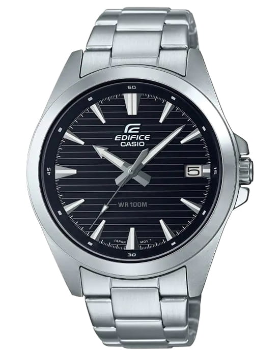 Спортивные японские мужские часы с календарем Casio Edifice EFV-140D-1AVUDF (EFV-140D-1A), кварцевый механизм с высокой точностью. Класс водозащиты: 100 метров, позволит плавать, нырять и заниматься другими водными видами спорта. Корпус часов изготовлен из стали, цвета.