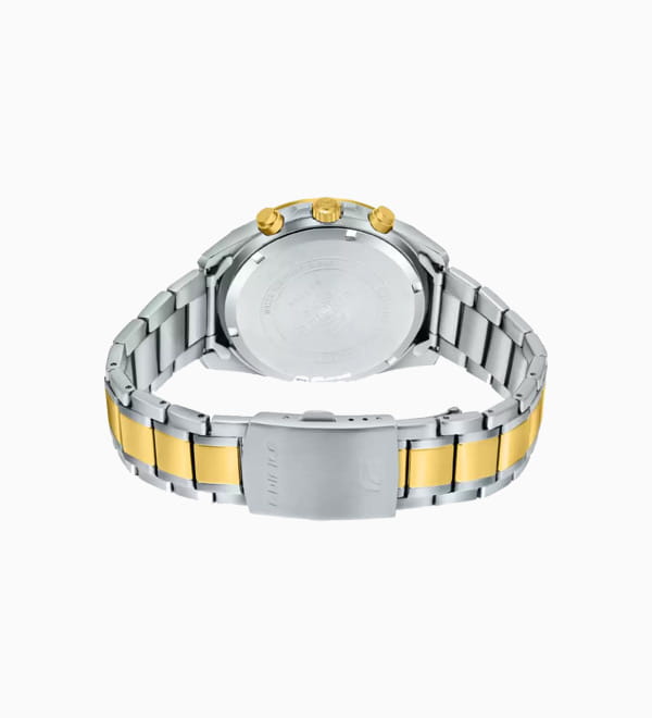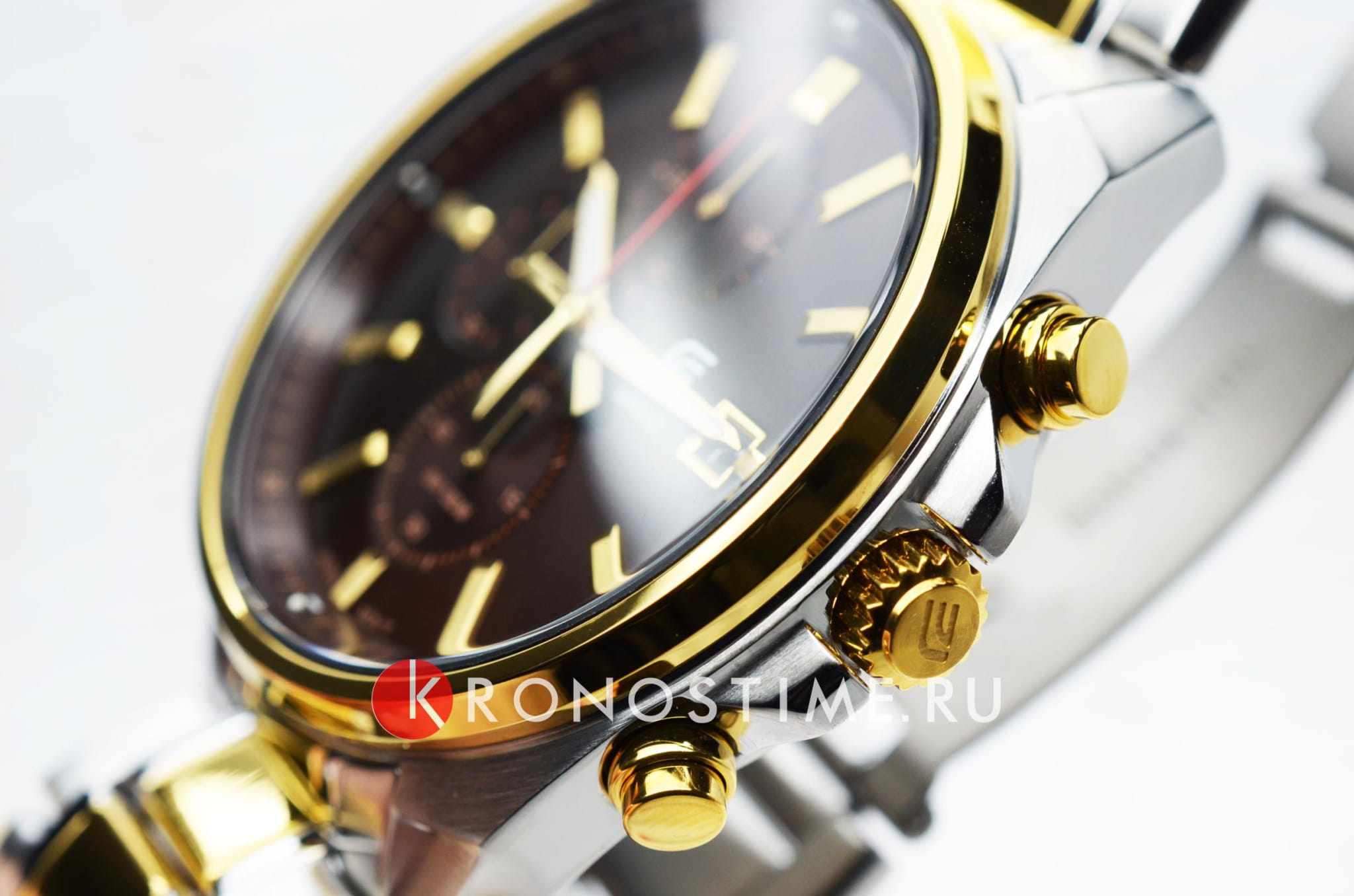 Японские мужские часы-хронографХронографФункция позволяет измерять отрезки времени с особой точностью: часы, минуты, секунды. Верным признаком хронографа является наличие на циферблате 3 дополнительных окошек-счётчиков. Casio Edifice EFV-610SG-5A, кварцевый механизм с высокой точностью. Класс водозащиты: 100 метров, позволит плавать, нырять и заниматься другими водными видами спорта. Корпус часов изготовлен из стали с IP-покрытиемIP-покрытиеМетод ионного напыления. Демонстрирует повышенную устойчивость к истиранию, окислению и химическим веществам. Под воздействием высокого давления и температуры около 1500°C молекулы металла надёжно соединяются с частицами корпуса часов.. Раскладная застёжкаРаскладная застёжкаТакой тип застёжки используется только на браслетах из металла. Она никогда не раскрывается полностью, происходит разделение на 2 и более частей. Раскладывающая застёжка снизит вероятность потери часов к минимуму. с фиксатором. Светонакопительное покрытие NeobriteПодсветка NeobriteИспользование светонакопительных составов на основе сульфида цинка или алюмината стронция, яркий свет можно наблюдать на протяжении 6-10 часов после «зарядки» часов около источника света. обеспечивает длительное послесвечение в темноте даже после кратковременного нахождения на свету. СекундомерСекундомерСекундоме́р — прибор, способный измерять интервалы времени с точностью до долей секунды. с разрешением показаний 1/10 сек и временем измерения 1 ч. Циферблат с окошком даты.