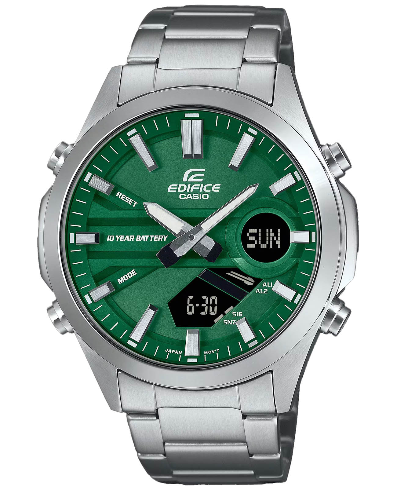 Японские мужские кварцевые часы c хронографомХронографФункция позволяет измерять отрезки времени с особой точностью: часы, минуты, секунды. Верным признаком хронографа является наличие на циферблате 3 дополнительных окошек-счётчиков. Casio Edifice EFV-C120D-3ADF (EFV-C120D-3A), кварцевый механизм с высокой точностью. Класс водозащиты: 100 метров, позволит плавать, нырять и заниматься другими водными видами спорта. Корпус часов изготовлен из стали. Стальной браслет на раскладной застёжкеРаскладная застёжкаТакой тип застёжки используется только на браслетах из металла. Она никогда не раскрывается полностью, происходит разделение на 2 и более частей. Раскладывающая застёжка снизит вероятность потери часов к минимуму., расстегиваемой одним касанием. Подсветка NeobriteПодсветка NeobriteИспользование светонакопительных составов на основе сульфида цинка или алюмината стронция, яркий свет можно наблюдать на протяжении 6-10 часов после «зарядки» часов около источника света. обеспечивает длительное послесвечение в темноте даже после кратковременного нахождения на свету. Циферблат с метками в виде штрихов. 12-ти и 24-х часовой формат времени. СекундомерСекундомерСекундоме́р — прибор, способный измерять интервалы времени с точностью до долей секунды. с точностью показаний 1/100с и временем измерения 24ч. Сплит-хронографСплит-хронографИспользуется для измерения продолжительности нескольких временных отрезков, начинающихся одновременно, а заканчивающихся в разное время.. ТаймерТаймерОтсчитывает секунды в обратном направлении в заданном интервале времени. обратного отсчета от 1мин до 24ч. Мировое времяМировое время Полезное часовое усложнение, отображающее время в основных городах и известных областях по всему миру, оно связано с часовыми поясами, удобно для путешественников и бизнесменов. – 30 городов (29 часовых поясов), возможность включения/отключения летнего времени. Записная книжка на 30 ячеек памяти для записи имен и телефонных номеров, каждая запись может включать в себя текст из 8 букв и 16 цифр. Класс водозащиты: 100 метров, позволит плавать, нырять и заниматься другими водными видами спорта.