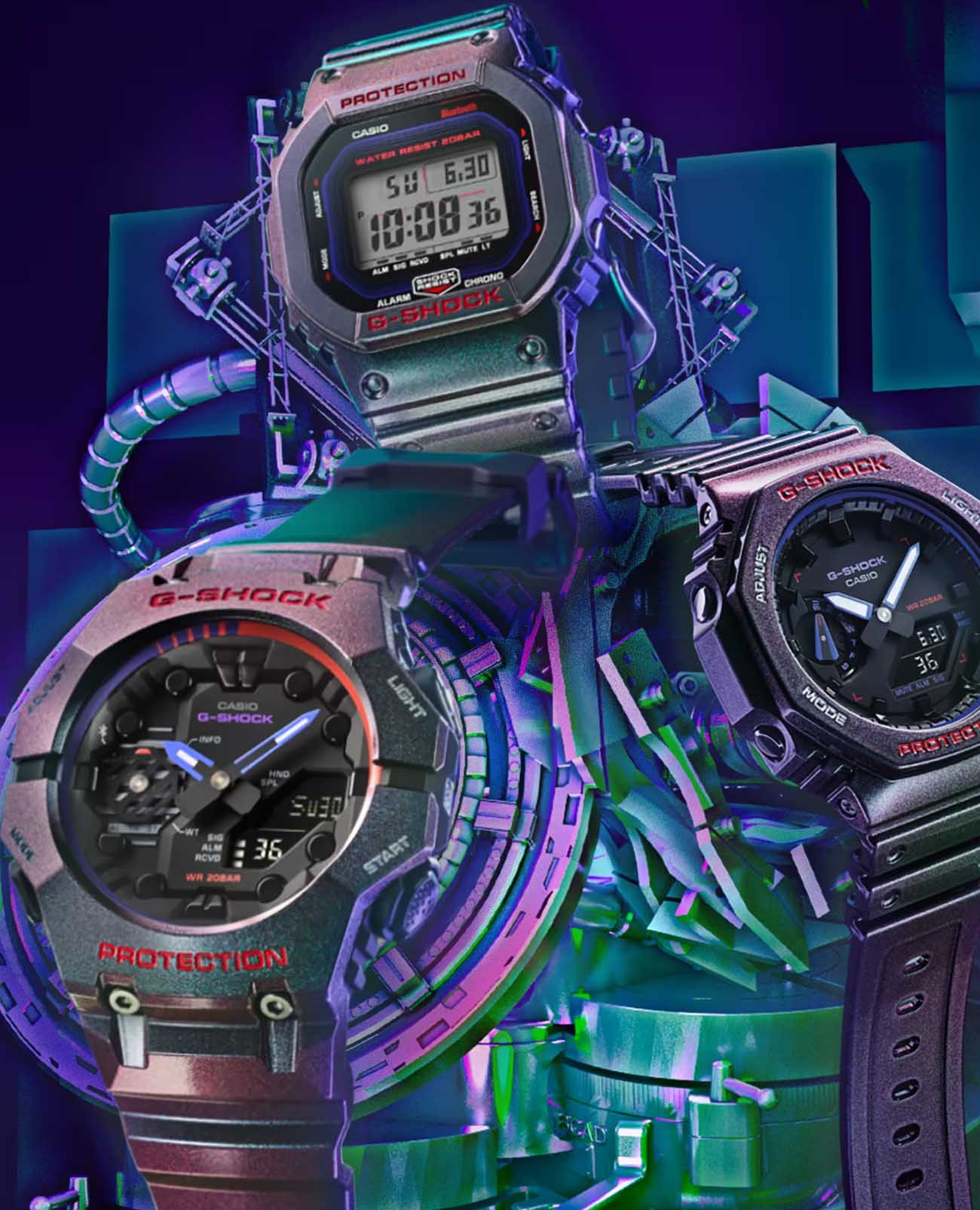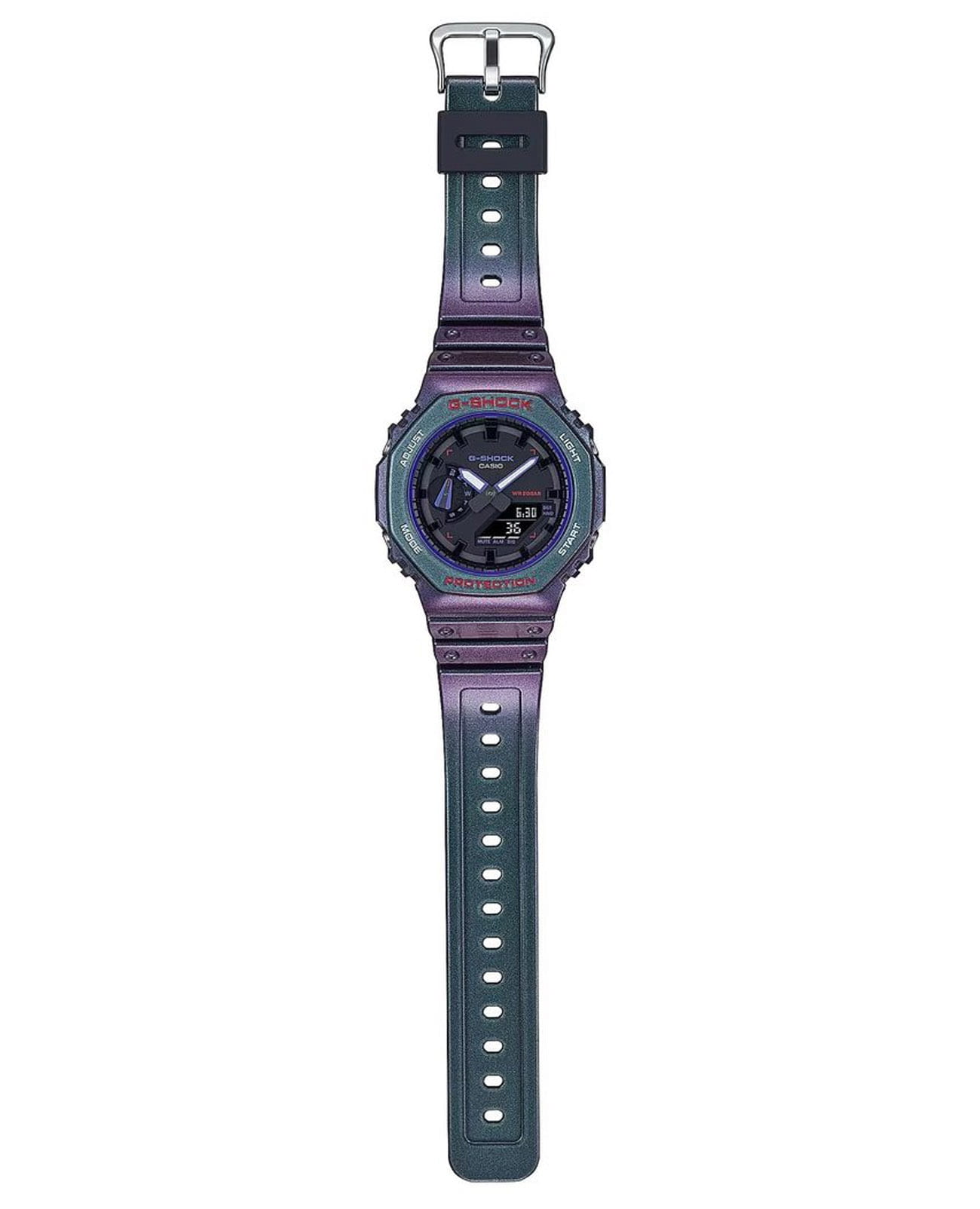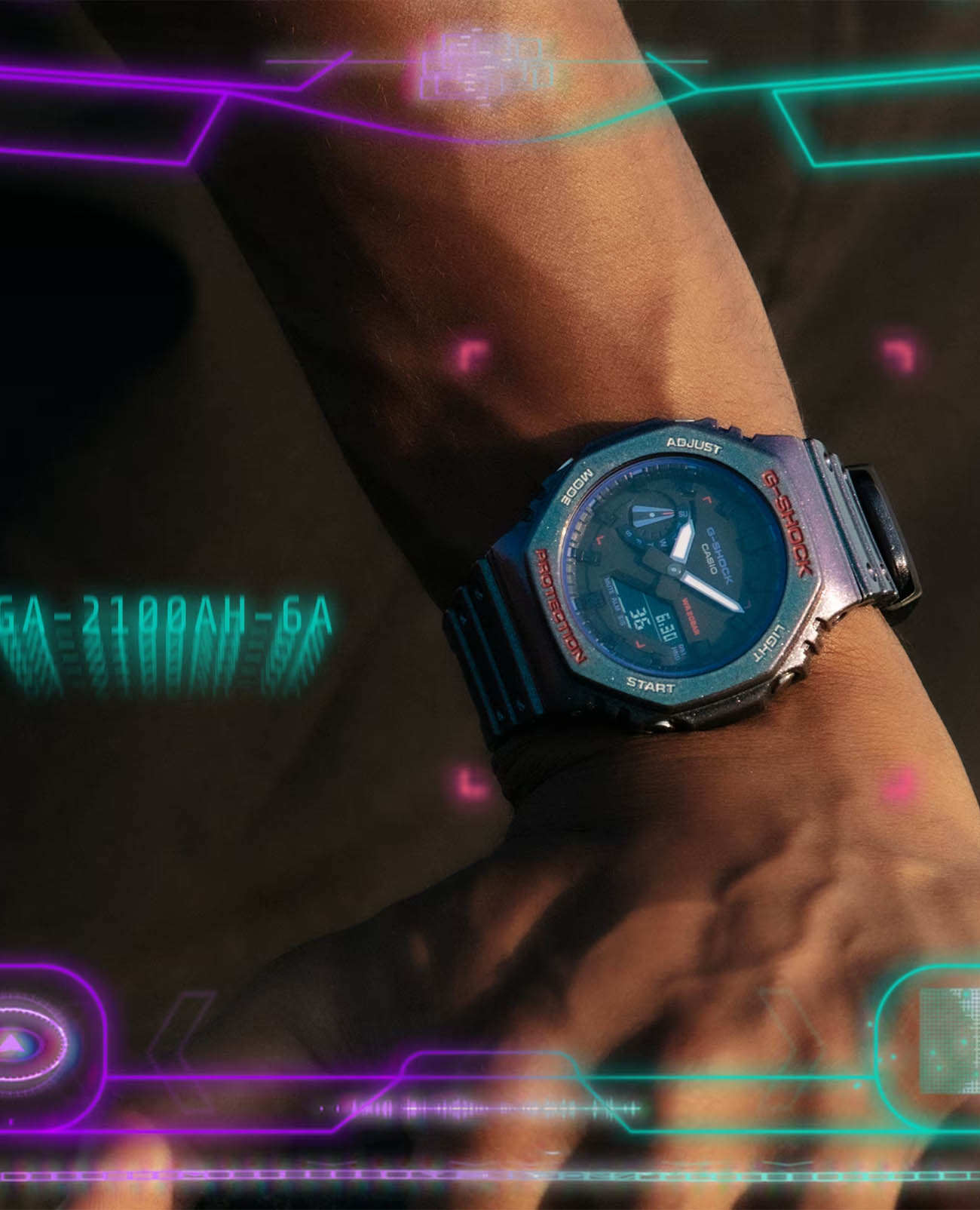 Японские мужские часы Casio G-Shock GA-2100AH-6A. Для тех, кто ставит перед собой более высокие цели в виртуальном мире — и в реальной жизни! Представляем G-SHOCK, вдохновленный решимостью, необходимой для достижения высочайших уровней компьютерных игр и выживания. Геймеры знают, что нужно для достижения высоких результатов в экшенах и стрелялках. Эти часы воссоздают захватывающий, постоянно меняющийся игровой мир с помощью поляризованной краски фиолетового и зеленого цветов, которая меняет цвет в зависимости от угла обзора. Такие детали, как оптический прицел для наведения прицела на цель, воплощены в оранжевых акцентах и графике на жидкокристаллическом экране, создавая игривый дизайн, который плавно перемещается между реальным и виртуальным мирами. Carbon Core GuardCarbon Core Guard Новейшая структура корпуса, разработанная Casio. Полиуретановая пластина дополнительно усилена карбоновыми вставками, что придаёт специальную защиту от механических повреждений. Карбон отличается лёгкостью и прочностью.. Минеральное стеклоМинеральное стеклоМинеральное стекло представляет собой искусственно выращенный минерал кварца. Такое стекло отличается особой устойчивостью к повреждениям и царапинам. Уступает по некоторым качествам сапфировому стеклу. устойчивое к появлению царапин, обладающее высокой прозрачностью. Светодиодная подсветкаСветодиодная подсветкаСветодиодная или LED-подсветка обеспечивает появление яркого холодного свечения за счёт LED-элементов - маленьких лампочек. Они потребляют минимальное количество энергии, чаще всего можно встретить 1 светодиод, в нижней части циферблата., настраиваемое послесвечение 1,5 или 3сек. Мировое время Мировое время Полезное часовое усложнение, отображающее время в основных городах и известных областях по всему миру, оно связано с часовыми поясами, удобно для путешественников и бизнесменов. 31 часовой пояс (48 городов + всемирное координированное время UTCUTCВсемирное кординационное время, не имеющее привязки к географическому положению Гринвича, основывается на атомном отсчёте времени. Регулировка времени осуществляется более точно, чем устаревшее GMT.