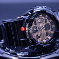 Аксессуар представляет собой идеальный вариант на каждый день. Ярким акцентом является циферблат с продуманным расположением всех элементов. Его розово-золотистый металлический блеск выделяется на тёмном фоне пластикового противоударного корпусаУдаропрочный корпусМеханизм заключён в корпус, выполненный из современных материалов, устойчивых к ударам, механическим повреждениям и падению с высоты: инновационный пластик, карбон, нержавеющая сталь, титан.. Он отвечает за безопасность японского кварцевого механизма, уберегая от последствий ударов, падения с высоты. Калибр измеряет время с точностью -/+15 секунд в месяц. Срок службы батарейки - 2 года. Циферблат с автоматической светодиодной подсветкойСветодиодная подсветкаСветодиодная или LED-подсветка обеспечивает появление яркого холодного свечения за счёт LED-элементов - маленьких лампочек. Они потребляют минимальное количество энергии, чаще всего можно встретить 1 светодиод, в нижней части циферблата.. Минеральное стекло. Водостойкость до 20 бар. Устойчивость к магнитным полям. Таймер обратного отсчёта, хронографХронографФункция позволяет измерять отрезки времени с особой точностью: часы, минуты, секунды. Верным признаком хронографа является наличие на циферблате 3 дополнительных окошек-счётчиков., автоматический календарь, расчёт средней скорости пути, мировое времяМировое время Полезное часовое усложнение, отображающее время в основных городах и известных областях по всему миру, оно связано с часовыми поясами, удобно для путешественников и бизнесменов. , будильник. Габариты: 55 x 51,2 x 16,9 мм.