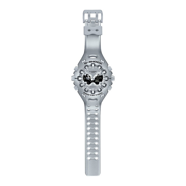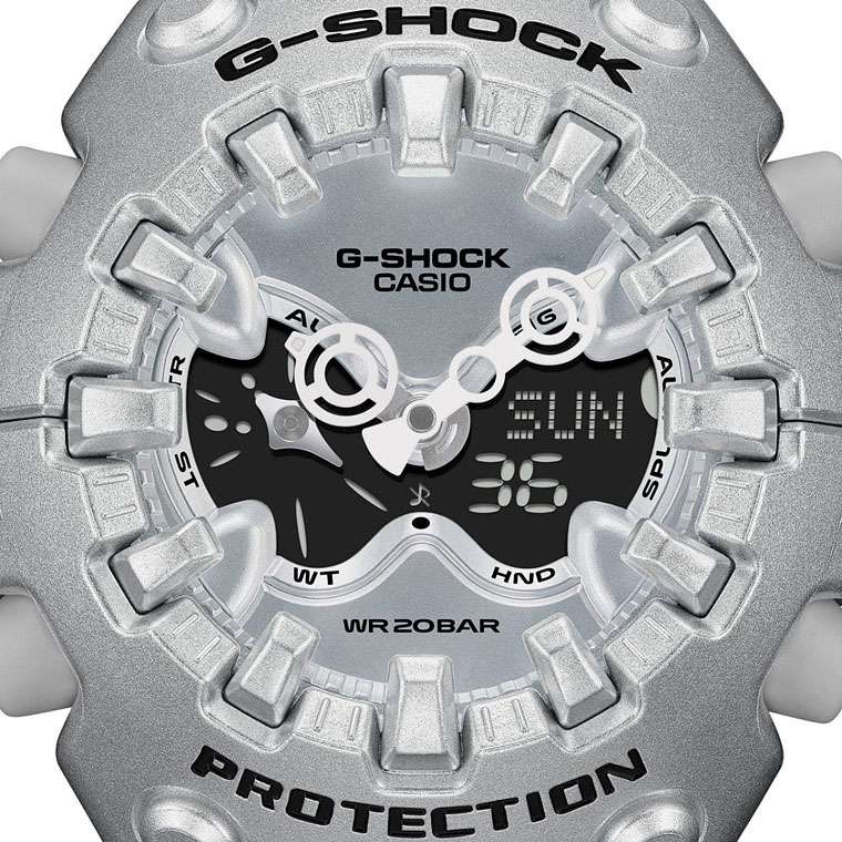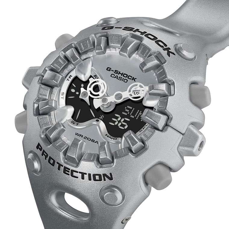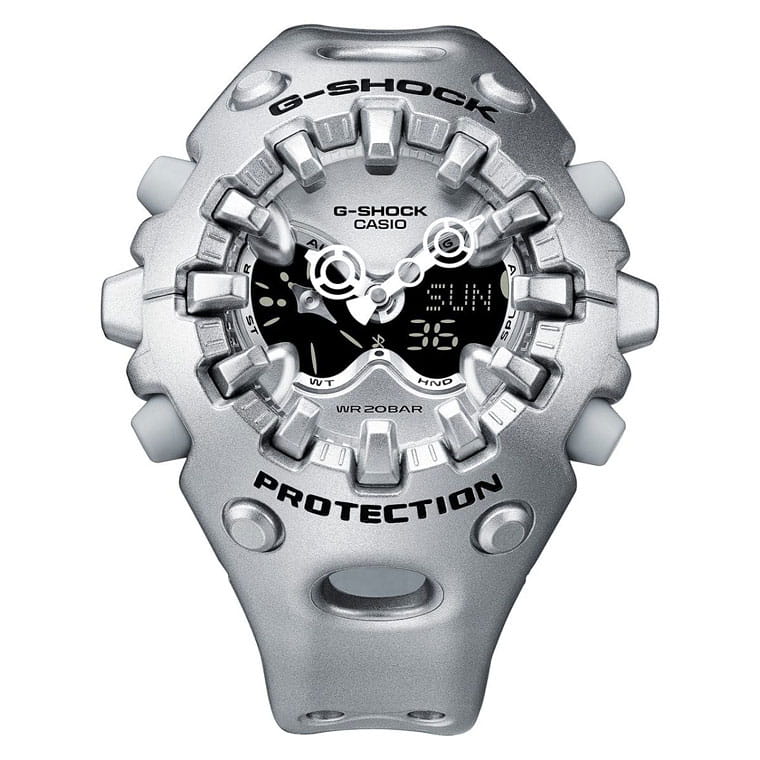 Мужские наручные часы Casio G-Shock GA-V01A-8A — это яркое сочетание футуристического дизайна и передовых технологий. Модель выполнена в ударопрочном корпусеУдаропрочный корпусМеханизм заключён в корпус, выполненный из современных материалов, устойчивых к ударам, механическим повреждениям и падению с высоты: инновационный пластик, карбон, нержавеющая сталь, титан. из пластика и оснащена аналого-цифровым отображением времени, что делает их универсальными как для повседневной жизни, так и для активного образа жизни. Часы работают на кварцевом механизме, обеспечивающем точность хода и минимальное обслуживание. Батарейка рассчитана на 10 лет использования, что делает модель особенно экономичной и удобной в эксплуатации. Часы обладают водонепроницаемостью до WR200, позволяют плавать, нырять и заниматься другими водными видами спорта без опасений за сохранность механизма. Циферблат дополнен функцией мирового времени, окошком даты, а также возможностью переключения между 12-ти и 24-х часовым форматом времени. Присутствуют функции хронографа , секундомера с точностью 1/100 секунды, таймераТаймерОтсчитывает секунды в обратном направлении в заданном интервале времени. обратного отсчёта на 24 часа, пяти ежедневных будильниковБудильникБуди́льник — часы, в заданный момент времени подающие звуковой, световой и/или в редких случаях другой сигнал. и почасового сигнала. Также реализована функция временного перемещения стрелок, чтобы обеспечить беспрепятственный обзор цифровых показаний. Циферблат защищен прочным минеральным стекломМинеральное стеклоМинеральное стекло представляет собой искусственно выращенный минерал кварца. Такое стекло отличается особой устойчивостью к повреждениям и царапинам. Уступает по некоторым качествам сапфировому стеклу., а ремешок изготовлен из высококачественного полимерного материала, обеспечивающего комфорт при ношении.Светодиодная подсветкаСветодиодная подсветкаСветодиодная или LED-подсветка обеспечивает появление яркого холодного свечения за счёт LED-элементов - маленьких лампочек. Они потребляют минимальное количество энергии, чаще всего можно встретить 1 светодиод, в нижней части циферблата. освещает весь циферблат, после отпускания кнопки свечение продолжается еще некоторое время. Эта модель — настоящий прорыв в дизайне линейки G-Shock: футуристический внешний вид, вдохновлённый научной фантастикой, и богатый набор функций делают их не просто аксессуаром, а верным спутником в любом деле. Это идеальный выбор для тех, кто ценит стиль, надёжность и инновационные технологии.