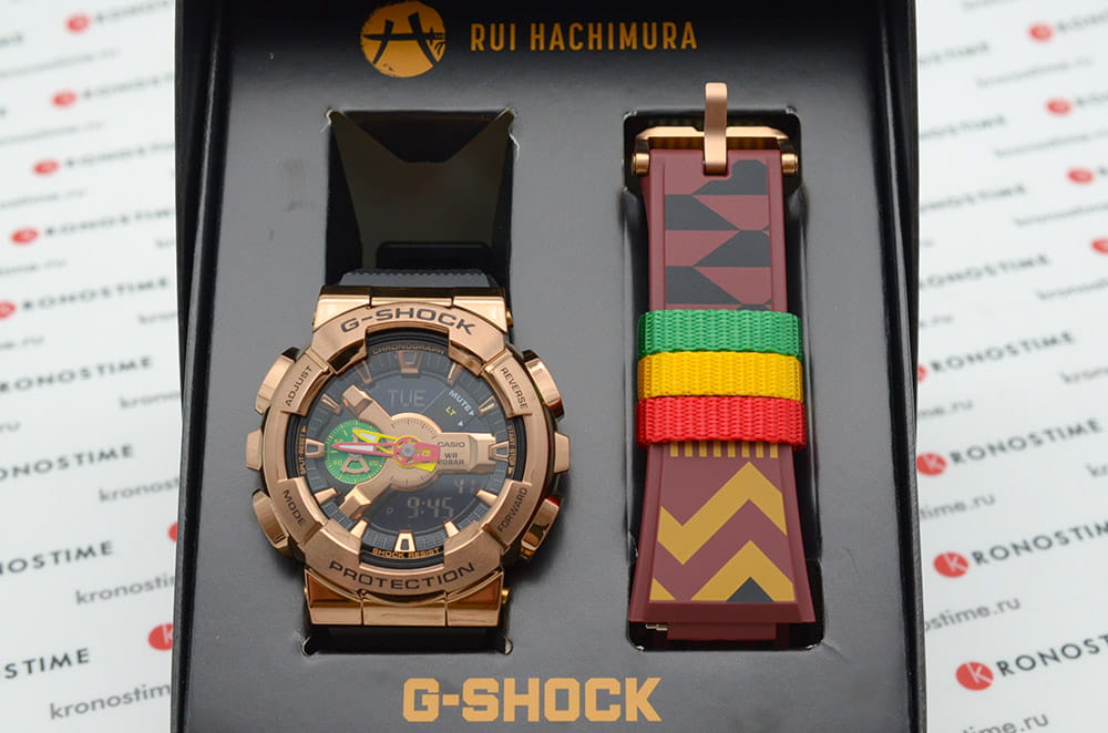 Выпущенные ограниченной серией часы Casio G-Shock GM-110RH-1AER вдохновлены одним из самых успешных японских баскетболистов в NBA, игроку «Вашингтон Уизардс» — Руи Хатимуре. Красные, желтые и зеленые элементы циферблата символизируют флаг Бенина, родины баскетболиста. В комплекте поставки часов имеется ремешок, украшенный африканскими узорами, а на задней же крышке часов расположился фирменный логотип Руи Хатимуры.