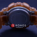 Компактный аксессуар имеет дизайн в скелетонизорованном формате. Полимерный корпус и ремешок цвета кофе с молоком изготовлены в полупрозрачном исполнении. Циферблат с минеральным стеклом наделён винтажными элементами: окошки и стрелки оформлены в духе музыкальных проигрывателей эпохи 90-х. Модель обладает противоударным корпусомУдаропрочный корпусМеханизм заключён в корпус, выполненный из современных материалов, устойчивых к ударам, механическим повреждениям и падению с высоты: инновационный пластик, карбон, нержавеющая сталь, титан., выдерживающим удары, вибрации, падение с высоты. Наручные часы станут идеальным вариантом для девушки, придерживающейся активного образа жизни. Японский кварцевый калибр характеризуется точностью хода +/- 15 секунд в месяц. Он работает от батарейки с 2-летним сроком службы. Часы подходят для плавания и ныряния, так как сохраняют водонепроницаемость при давлении до 20 бар. Циферблат подсвечивается LED-диодом Светодиодная подсветкаСветодиодная или LED-подсветка обеспечивает появление яркого холодного свечения за счёт LED-элементов - маленьких лампочек. Они потребляют минимальное количество энергии, чаще всего можно встретить 1 светодиод, в нижней части циферблата., функция автоподсветки активируется при поднесении часов к лицу. Функции: секундомер с точностью в 1/1000 секунды, хронографХронографФункция позволяет измерять отрезки времени с особой точностью: часы, минуты, секунды. Верным признаком хронографа является наличие на циферблате 3 дополнительных окошек-счётчиков., будильник, мировое времяМировое время Полезное часовое усложнение, отображающее время в основных городах и известных областях по всему миру, оно связано с часовыми поясами, удобно для путешественников и бизнесменов. – 48 городов, календарь, таймер, индикация средней скорости пройденного маршрута. Габариты: 49 x 45,9 x 15,8 мм.