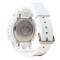 Компактный аксессуар имеет дизайн в скелетонизорованном формате. Полимерный корпус и ремешок белого цвета. Циферблат с минеральным стеклом наделён винтажными элементами: окошки и стрелки оформлены в духе музыкальных проигрывателей эпохи 90-х. Модель обладает противоударным корпусомУдаропрочный корпусМеханизм заключён в корпус, выполненный из современных материалов, устойчивых к ударам, механическим повреждениям и падению с высоты: инновационный пластик, карбон, нержавеющая сталь, титан., выдерживающим удары, вибрации, падение с высоты. Наручные часы станут идеальным вариантом для девушки, придерживающейся активного образа жизни. Японский кварцевый калибр характеризуется точностью хода +/- 15 секунд в месяц. Он работает от батарейки с 2-летним сроком службы. Часы подходят для плавания и ныряния, так как сохраняют водонепроницаемость при давлении до 20 бар. Циферблат подсвечивается LED-диодом Светодиодная подсветкаСветодиодная или LED-подсветка обеспечивает появление яркого холодного свечения за счёт LED-элементов - маленьких лампочек. Они потребляют минимальное количество энергии, чаще всего можно встретить 1 светодиод, в нижней части циферблата., функция автоподсветки активируется при поднесении часов к лицу. Функции: секундомер с точностью в 1/1000 секунды, хронографХронографФункция позволяет измерять отрезки времени с особой точностью: часы, минуты, секунды. Верным признаком хронографа является наличие на циферблате 3 дополнительных окошек-счётчиков., будильник, мировое времяМировое время Полезное часовое усложнение, отображающее время в основных городах и известных областях по всему миру, оно связано с часовыми поясами, удобно для путешественников и бизнесменов. – 48 городов, календарь, таймер, индикация средней скорости пройденного маршрута. Габариты: 49 x 45,9 x 15,8 мм.