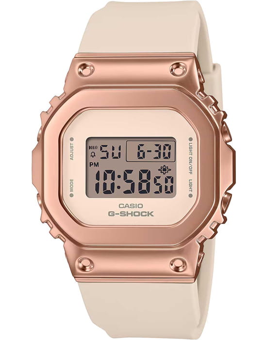 Японские женские часы c хронографомХронографФункция позволяет измерять отрезки времени с особой точностью: часы, минуты, секунды. Верным признаком хронографа является наличие на циферблате 3 дополнительных окошек-счётчиков. Casio GM-S5600UPG-4ER из коллекции G-Shock - это практичный и стильный аксессуар с множеством полезных функций. Наручные часы понравятся своим сдержанным и одновременно привлекательным дизайном. Корпус часов изготовлен из нержавеющей стали с IP-покрытиемIP-покрытиеМетод ионного напыления. Демонстрирует повышенную устойчивость к истиранию, окислению и химическим веществам. Под воздействием высокого давления и температуры около 1500°C молекулы металла надёжно соединяются с частицами корпуса часов. и прочного пластика. На компактном циферблате отображается время в 12- и 24-часовом форматах. Есть автоматический вечный календарьВечный календарьКлассическое часовое усложнение, представляющее собой календарь, рассчитанный на несколько лет вперёд (стандартно – до 2099 года). Определяет текущую дату, день недели, месяц. с текущей датой. Благодаря люминесцентной подсветкеЛюминесцентное покрытиеПозволяет считывать показания времени в темноте. Производители наносят на стрелки, часовые индексы, безель или поверхность циферблата светонакопительный состав, дающий холодное свечение., считывать информацию в темноте не составит труда. Есть таймерТаймерОтсчитывает секунды в обратном направлении в заданном интервале времени. с автоматическим повтором. СекундомерСекундомерСекундоме́р — прибор, способный измерять интервалы времени с точностью до долей секунды. измеряет прошедшее время с двумя точностями показаний: 1/100с и 1с. Тип механизма - кварцевый. Ударопрочный корпусУдаропрочный корпусМеханизм заключён в корпус, выполненный из современных материалов, устойчивых к ударам, механическим повреждениям и падению с высоты: инновационный пластик, карбон, нержавеющая сталь, титан. защищает механизм от ударов и вибрации.