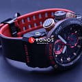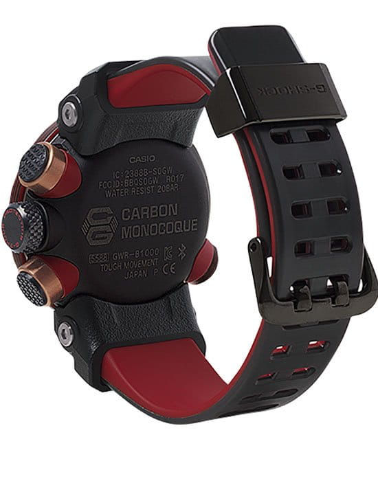 Внушительный аксессуар стильно смотрится на широком запястье, гармонично смотрятся крупные детали в красном и бронзовом цвете. Задняя крышка здесь отсутствует, ударопрочный корпусУдаропрочный корпусМеханизм заключён в корпус, выполненный из современных материалов, устойчивых к ударам, механическим повреждениям и падению с высоты: инновационный пластик, карбон, нержавеющая сталь, титан. сделан из монолитного углеродного монокока, вдохновлённого конструкцией ранних самолётов. Он состоит из 52 карбоновых слоёв, уникальная текстура просматривается на боковых частях безеляБезельВнешний ободок, закрепляющий стекло. В спортивных часах так называется поворотное кольцо с делениями на циферблате, выполняет роль таймера – замеряет отрезки времени на шкале. Неподвижный безель – элемент декора. Однонаправленно вращающийся безель на дайверских часах позволяет фиксировать моменты погружения и выныривания на поверхность. – с успехом реализована технология Carbon Core GuardCarbon Core Guard Новейшая структура корпуса, разработанная Casio. Полиуретановая пластина дополнительно усилена карбоновыми вставками, что придаёт специальную защиту от механических повреждений. Карбон отличается лёгкостью и прочностью.. Полимерный ремешок тоже имеет усиление карбоновыми волокнами. Наручные часы обладают полезным функционалом: BluetoothBluetoothСовременная технология, позволяющая синхронизировать часы с телефоном и переносить данные. Часы с Bluetooth расширяют возможности вашего смартфона и делают его использование ещё более удобным., будильник, мировое времяМировое время Полезное часовое усложнение, отображающее время в основных городах и известных областях по всему миру, оно связано с часовыми поясами, удобно для путешественников и бизнесменов. , таймер, приём радиосигнала, питание от солнечной батареи . Сапфировое стекло с антибликовой обработкой. Яркая люминесцентная подсветкаЛюминесцентное покрытиеПозволяет считывать показания времени в темноте. Производители наносят на стрелки, часовые индексы, безель или поверхность циферблата светонакопительный состав, дающий холодное свечение.. Габариты: 50,1 x 46,4 x 16,9 мм.