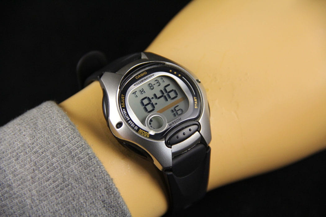 Аккуратный корпус сделан из прочного полимерного пластика. В часах установлен дополнительный циферблат мирового времени, и поэтому их обладатель может следить за временем из второй часовой зоны. Защита часов обеспечивается акриловым стеклом выпуклой формы. Встроенный будильник с настраиваемым звуковым сигналом. Механизм часов - электронный. Срок службы батарейки равен 10 годам. Водонепроницаемость - 50 WR. Вес аксессуара составляет 20 грамм.