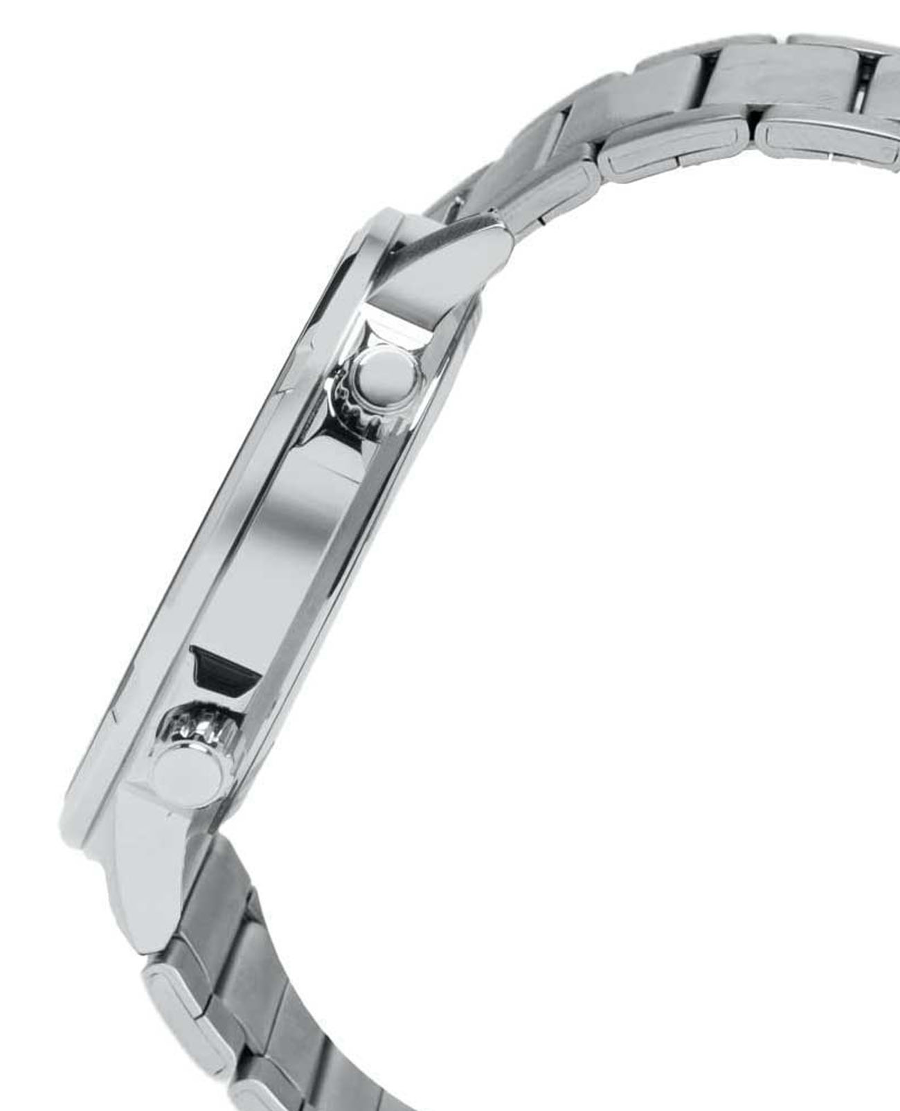 Браслет из нержавеющей стали дополнен раскладной застёжкойРаскладная застёжкаТакой тип застёжки используется только на браслетах из металла. Она никогда не раскрывается полностью, происходит разделение на 2 и более частей. Раскладывающая застёжка снизит вероятность потери часов к минимуму., обеспечивающей комфортное ношение. Водонепроницаемость 10 бар (100 метров) делает эту модель идеальным выбором для плавания и активного отдыха.