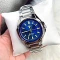 Японские мужские кварцевые часы с минеральным стекломМинеральное стеклоМинеральное стекло представляет собой искусственно выращенный минерал кварца. Такое стекло отличается особой устойчивостью к повреждениям и царапинам. Уступает по некоторым качествам сапфировому стеклу. Casio Collection MTP-RS100D-2A, кварцевый механизм с высокой точностью. Корпус часов изготовлен из нержавеющей стали. Питание от солнечной энергии. Время работы - 4 месяца. Циферблат с метками в виде штрихов выполнен по технологии Sunray (солнечные лучи). Циферблат с метками в виде штрихов. Стрелки и метки с люминесцентным покрытиемЛюминесцентное покрытиеПозволяет считывать показания времени в темноте. Производители наносят на стрелки, часовые индексы, безель или поверхность циферблата светонакопительный состав, дающий холодное свечение.. Заводная головка с защитой. Класс водозащиты: 50 метров, позволит защитить корпус от случайных брызг или капель дождя. Стальной браслет на раскладной застёжкеРаскладная застёжкаТакой тип застёжки используется только на браслетах из металла. Она никогда не раскрывается полностью, происходит разделение на 2 и более частей. Раскладывающая застёжка снизит вероятность потери часов к минимуму..