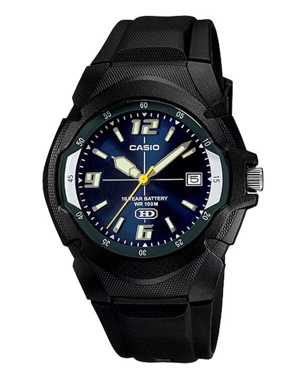 Мужские японские часы Casio Collection MW-600F-2A, кварцевый механизм с высокой точностью, органическое стекло. Корпус часов изготовлен из пластика. Метки в виде штрихов. Стрелки и метки с люминесцентным покрытиемЛюминесцентное покрытиеПозволяет считывать показания времени в темноте. Производители наносят на стрелки, часовые индексы, безель или поверхность циферблата светонакопительный состав, дающий холодное свечение.. Окошко даты в положении 3 часов. Заводная головка с защитой. Класс водозащиты: 100 метров, позволит плавать, нырять и заниматься другими водными видами спорта. Ремешок из полимерного материала на стандартной застежке.