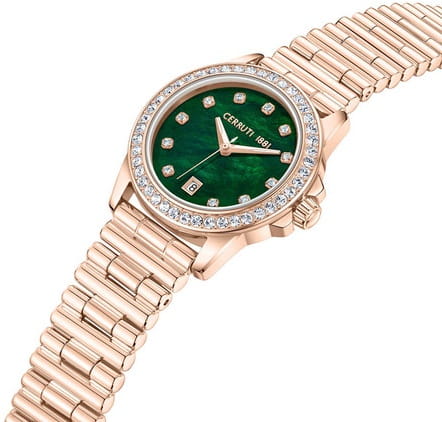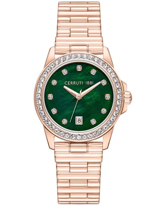 Корпус часов выполнен из стали с изысканным IP-покрытиемIP-покрытиеМетод ионного напыления. Демонстрирует повышенную устойчивость к истиранию, окислению и химическим веществам. Под воздействием высокого давления и температуры около 1500°C молекулы металла надёжно соединяются с частицами корпуса часов., украшенным сверкающими кристаллами и цирконами, что придаёт часам неповторимое сияние. Циферблат, также украшенный кристаллами, создаёт атмосферу утончённой женственности. Стрелки с люминесцентным покрытиемЛюминесцентное покрытиеПозволяет считывать показания времени в темноте. Производители наносят на стрелки, часовые индексы, безель или поверхность циферблата светонакопительный состав, дающий холодное свечение. облегчают чтение времени даже в условиях слабого освещения.