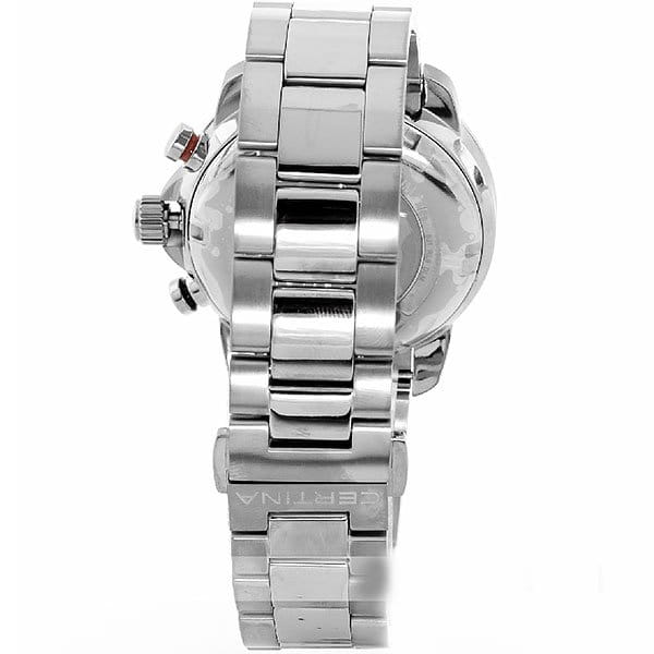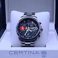 Наручные часы станут превосходным дополнением для образа, такой аксессуар выбирают успешные и уверенные в себе мужчины. Модель в серебристом цвете с красными элементами оформления выполнена из титана. Для материала характерны антикоррозионные свойства, устойчивость к магнитным полям и морской воде. Абсолютная точность хода обеспечивается благодаря швейцарскому кварцевому калибру ETA 251.264 Precidrive™Precidrive™Инновационный кварцевый механизм Certina. Часы, оснащённые этим швейцарским калибром, приравниваются к точности к сертифицированным хронометрам, точность хода составляет +/-10 секунд в год.. Ударопрочность и водонепроницаемость 200 метров - реализация технологии DS ConceptDS ConceptDouble Security Concept, обозначает двойную надёжность и безупречную точность часов Certina. Двойная система защиты подразумевает обеспечение максимальной устойчивости к ударам и высоких показателей водонепроницаемости.. Закручивающиеся заводная головка и задняя крышка. Стекло из сапфира с двухсторонним антибликовым покрытием. БезельБезельВнешний ободок, закрепляющий стекло. В спортивных часах так называется поворотное кольцо с делениями на циферблате, выполняет роль таймера – замеряет отрезки времени на шкале. Неподвижный безель – элемент декора. Однонаправленно вращающийся безель на дайверских часах позволяет фиксировать моменты погружения и выныривания на поверхность. со шкалой тахиметраТахиметрРазмеченная шкала, располагается на ободке или безеле часов. Тахиметр позволяет рассчитать скорость на определённом участке пути, расстояние измеряется в километрах или милях.. Секундомер 1/100 секунды, дата. Индикатор EOLEOLПредставляет собой систему, уведомляющую владельца часов о необходимости замены элемента питания. За 2 недели до полного разряда батарейки секундная стрелка перестаёт ходить чётко и начинает перепрыгивать на 3-4 деления.. Диаметр корпуса: 44 мм.