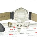 Классический циферблат чёрного цвета дополнен серебристыми стрелками, метками и арабскими цифрами, ярко выделяющимися на тёмном фоне. Ремешок из натуральной кожи с тиснением, имитирующим кожу крокодила, позволит привнести в образ нотки элегантности. Кварцевый калибр ETA E64.111. Антибликовое покрытие сапфирового стекла. Надёжный корпус из нержавеющей стали 316L. Яркая люминесцентная подсветкаЛюминесцентное покрытиеПозволяет считывать показания времени в темноте. Производители наносят на стрелки, часовые индексы, безель или поверхность циферблата светонакопительный состав, дающий холодное свечение.. Концепция ударопрочности DS Concept DS ConceptDouble Security Concept, обозначает двойную надёжность и безупречную точность часов Certina. Двойная система защиты подразумевает обеспечение максимальной устойчивости к ударам и высоких показателей водонепроницаемости.. Водостойкость 100 метров. Апертура даты, индикатор EOLEOLПредставляет собой систему, уведомляющую владельца часов о необходимости замены элемента питания. За 2 недели до полного разряда батарейки секундная стрелка перестаёт ходить чётко и начинает перепрыгивать на 3-4 деления.. Диаметр корпуса: 37 мм.