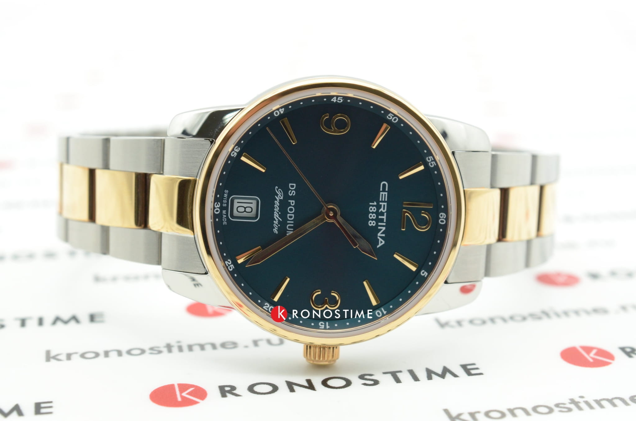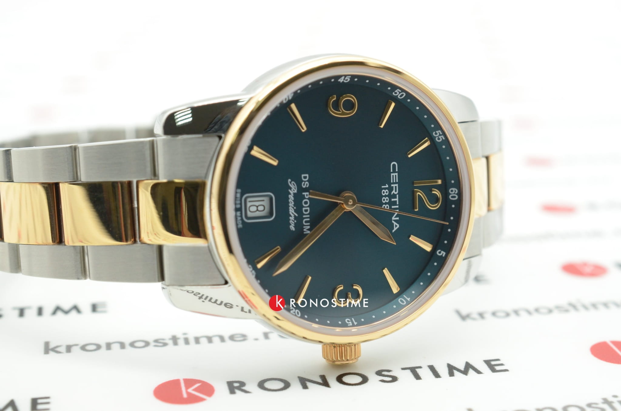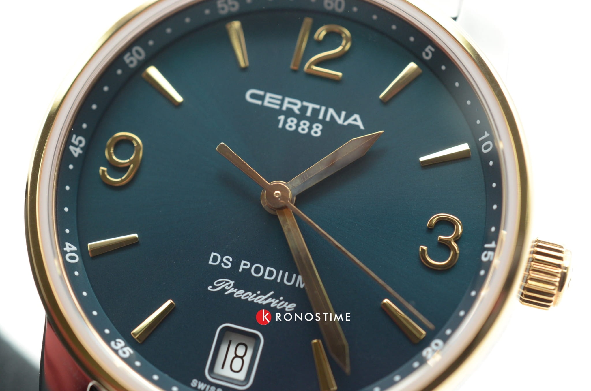 Модель с изысканной формой корпуса умело комбинирует элегантность и спортивный стиль, претворяя в жизнь универсальные часы для делового, повседневного или вечернего наряда. Они оснащены кварцевым швейцарским калибром ETA F03.411 Precidrive™Precidrive™Инновационный кварцевый механизм Certina. Часы, оснащённые этим швейцарским калибром, приравниваются к точности к сертифицированным хронометрам, точность хода составляет +/-10 секунд в год., обеспечивающим абсолютную точность показателей. Сапфировое стекло с односторонним антибликовым покрытием защищает ярко-зелёный циферблат. Водостойкость 100 метров. Концепция DS ConceptDS ConceptDouble Security Concept, обозначает двойную надёжность и безупречную точность часов Certina. Двойная система защиты подразумевает обеспечение максимальной устойчивости к ударам и высоких показателей водонепроницаемости.. Нержавеющая сталь с частичным PVD-покрытиемPVDУльтратонкое покрытие наносится в технике вакуумного напыления, сочетает в себе нитрид титана особой прочности со слоем золота или оксида хрома. Несёт в себе декоративную или защитную функцию. цвета розового золота. . Апертура даты, функция EOLEOLПредставляет собой систему, уведомляющую владельца часов о необходимости замены элемента питания. За 2 недели до полного разряда батарейки секундная стрелка перестаёт ходить чётко и начинает перепрыгивать на 3-4 деления.. Диаметр корпуса: 33 мм.