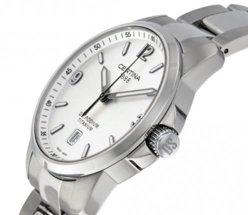 Наручные часы в серебристой расцветке выполнены из титана, материал высоко ценится за антимагнитные свойства. Это позволяет приближать точность хода швейцарского кварцевого механизма ETA F06.111 к идеальной отметке. Сапфировое стекло с антибликовым покрытием. Система DS ConceptDS ConceptDouble Security Concept, обозначает двойную надёжность и безупречную точность часов Certina. Двойная система защиты подразумевает обеспечение максимальной устойчивости к ударам и высоких показателей водонепроницаемости.. Стрелки и индексы с люминесцентным покрытиемЛюминесцентное покрытиеПозволяет считывать показания времени в темноте. Производители наносят на стрелки, часовые индексы, безель или поверхность циферблата светонакопительный состав, дающий холодное свечение.. Водостойкость WR 100. . Отображение текущей даты. Диаметр корпуса: 38 мм.