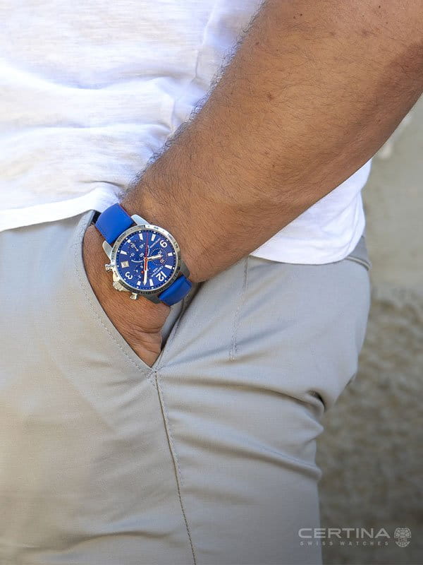 Новые пронумерованные модели DS Podium Chronograph 1/10sec Wilvo Limited Edition доступны в количестве 450 экземпляров Некоторые из моделей уже забронированы – и не без оснований: помимо менеджера команды Луиса Востерса эксклюзивные модели часов из рук президента Certina Адриана Боссара в Фрауэнфельде получат гонщики Wilvo Джереми Сивер, Шон Симпсон и Арно Тонус Разумеется, номера часов будут соответствовать номерам гонщиков: Джереми получит модель номер 91, Шон – 24 и Арно – номер 4 Новые модели переливаются синими бликами в официальном оттенке команды Wilvo Yamaha Official MXGP, дополненном красными стрелками хронографа Корпус из нержавеющей стали диаметром 41 мм скрывает ультрасовременный кварцевый часовой механизм Precidrive™, позволяющий отсчитывать десятые доли секунды в режиме реального времени Динамичное зрелище – как раз в духе MXGP!