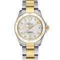 Certina DS Action Lady C032.007.22.116.00 – это украшение для женщин, предпочитающих яркие аксессуары. Корпус и браслет выполнены из высококачественной нержавеющей стали 316L с PVD-покрытиемPVDУльтратонкое покрытие наносится в технике вакуумного напыления, сочетает в себе нитрид титана особой прочности со слоем золота или оксида хрома. Несёт в себе декоративную или защитную функцию.. Под прочным сапфировым стекломСапфировое стеклоПрочный и надёжный материал из кристалла сапфира синтетического происхождения, характеризующийся особой твёрдостью и устойчивостью к царапинам и повреждениям. с антибликовым покрытиемАнтибликовое покрытиеСлой оксида металла в 0,13-0,3 микрон, благодаря которому стекло часов не бликует и не отражает свет. Антибликовое покрытие уменьшает отражение света в 10 раз, обеспечивая отличную читаемость показателей циферблата. расположен циферблат, украшенный бриллиантами, а также окошко даты в положении 3 часа, метки и стрелки, обозначенные люминесцентным покрытиемЛюминесцентное покрытиеПозволяет считывать показания времени в темноте. Производители наносят на стрелки, часовые индексы, безель или поверхность циферблата светонакопительный состав, дающий холодное свечение.. Керамический и стальной безельБезельВнешний ободок, закрепляющий стекло. В спортивных часах так называется поворотное кольцо с делениями на циферблате, выполняет роль таймера – замеряет отрезки времени на шкале. Неподвижный безель – элемент декора. Однонаправленно вращающийся безель на дайверских часах позволяет фиксировать моменты погружения и выныривания на поверхность. оснащен минутной шкалой, вращающейся в одном направлении, что облегчает измерение временных интервалов. Автоматический механизм Powermatic 80.611Powermatic 80Эксклюзивный калибр от швейцарской компании ETA с увеличенным запасом хода до 80 часов за счёт удлинённой заводной пружины. Характеризуется улучшенной системой спуска со сниженным трением. с пружиной Nivachron™Nivachron™Специально разработанный инновационный сплав Nivachron™ повышает устойчивость часов к воздействию магнитных полей. обеспечивает движение стрелок. Класс водозащиты 300 метров позволяет плавать, нырять и заниматься другими водными видами спорта. Стальной браслет закреплен на застёжке-бабочке с кнопкамиЗастёжка "бабочка"Такой вид застёжки дополняется предохранителями, помогающими избежать случайного раскрытия браслета. Обладают изящным исполнением. .