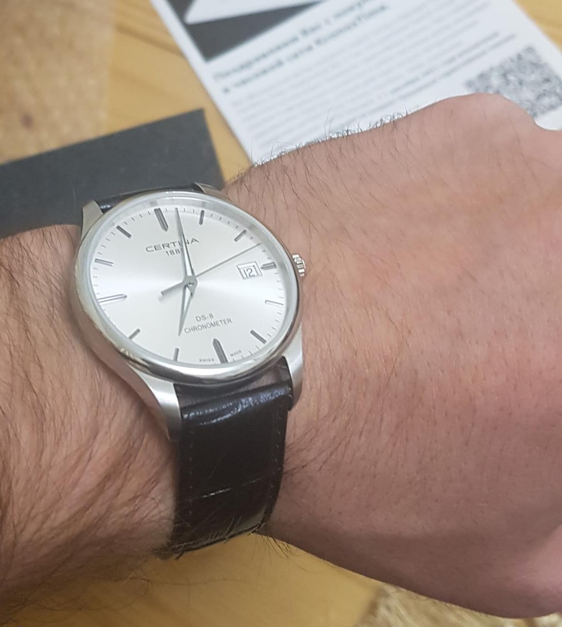 Материал корпуса из нержавеющей стали, марки 316L .Размер корпуса 38 мм, Кожаный ремешок. Размер корпуса 40 мм, Стекло у часов сапфировое, оно довольно прочное к царапинам и ваши часы всегда будут смотреться отлично. На руке сидят очень удобно. Циферблат достаточно четко и отчетливо виден.