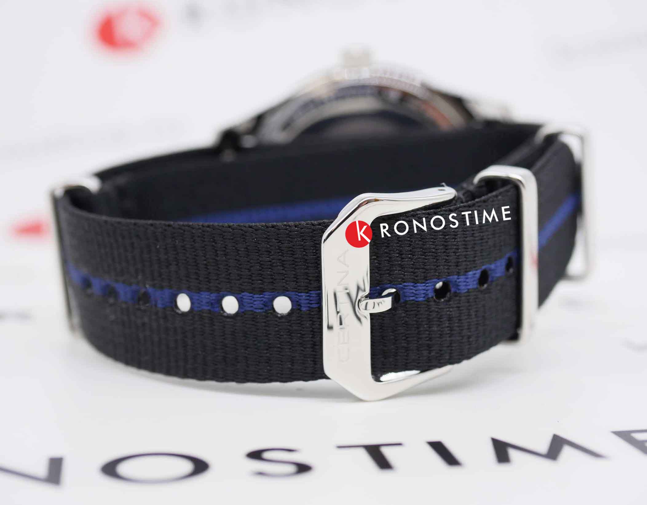 Certina DS PH100M Gent C044.410.18.040.00 – часы для поклонников ярких аксессуаров. Корпус изготовлен из высококачественной нержавеющей стали 316L с . Под твердым сапфировым стекломСапфировое стеклоПрочный и надёжный материал из кристалла сапфира синтетического происхождения, характеризующийся особой твёрдостью и устойчивостью к царапинам и повреждениям. с антибликовым покрытиемАнтибликовое покрытиеСлой оксида металла в 0,13-0,3 микрон, благодаря которому стекло часов не бликует и не отражает свет. Антибликовое покрытие уменьшает отражение света в 10 раз, обеспечивая отличную читаемость показателей циферблата. находится черный циферблат на котором вы найдете окошко даты в положении 3 часа, а также маркировку, покрытую люминесцентным покрытиемЛюминесцентное покрытиеПозволяет считывать показания времени в темноте. Производители наносят на стрелки, часовые индексы, безель или поверхность циферблата светонакопительный состав, дающий холодное свечение. Super-LumiNova. Класс водозащиты: 100 метров, позволит плавать, нырять и заниматься другими водными видами спорта. Тканевый ремешок. БезельБезельВнешний ободок, закрепляющий стекло. В спортивных часах так называется поворотное кольцо с делениями на циферблате, выполняет роль таймера – замеряет отрезки времени на шкале. Неподвижный безель – элемент декора. Однонаправленно вращающийся безель на дайверских часах позволяет фиксировать моменты погружения и выныривания на поверхность. из нержавеющей стали с PVD-покрытиемPVDУльтратонкое покрытие наносится в технике вакуумного напыления, сочетает в себе нитрид титана особой прочности со слоем золота или оксида хрома. Несёт в себе декоративную или защитную функцию.