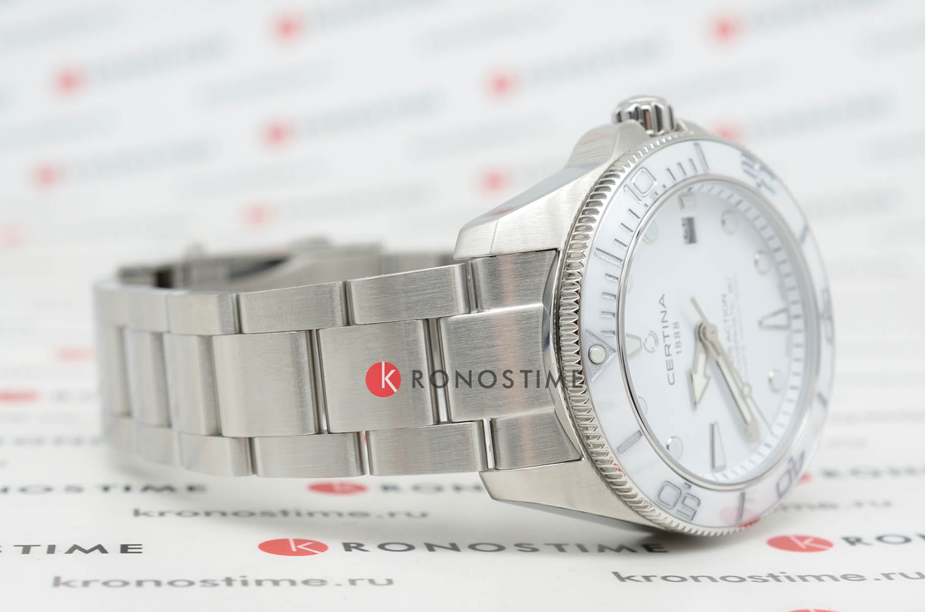 Мужские механические часы Certina DS Action C048.407.11.011.00 с автоматическим механизмом — это надёжный аксессуар, сочетающий в себе швейцарское качество и функциональность. Модель оснащена калибром POWERMATIC 80.611, обеспечивающим запас хода до 80 часов, что делает её удобной для повседневного использования. Корпус выполнен из нержавеющей стали диаметром 40,5 мм и толщиной 14,1 мм, а его поверхность защищена сапфировым стекломСапфировое стеклоПрочный и надёжный материал из кристалла сапфира синтетического происхождения, характеризующийся особой твёрдостью и устойчивостью к царапинам и повреждениям., устойчивым к царапинам и механическим повреждениям. Заводная головка с винтовым замком обеспечивает надёжную фиксацию на запястье. Браслет из стали серебристого цвета шириной 20 мм оснащён Раскладная застёжкаРаскладная застёжкаТакой тип застёжки используется только на браслетах из металла. Она никогда не раскрывается полностью, происходит разделение на 2 и более частей. Раскладывающая застёжка снизит вероятность потери часов к минимуму., обеспечивающей комфорт и надёжную фиксацию. Циферблат белого цвета дополнен точечными и батонными метками, а стрелки и индексы имеют Люминесцентное покрытиеЛюминесцентное покрытиеПозволяет считывать показания времени в темноте. Производители наносят на стрелки, часовые индексы, безель или поверхность циферблата светонакопительный состав, дающий холодное свечение., обеспечивающее отличную читаемость даже в условиях слабого освещения. Вращающийся безельБезельВнешний ободок, закрепляющий стекло. В спортивных часах так называется поворотное кольцо с делениями на циферблате, выполняет роль таймера – замеряет отрезки времени на шкале. Неподвижный безель – элемент декора. Однонаправленно вращающийся безель на дайверских часах позволяет фиксировать моменты погружения и выныривания на поверхность. с керамической вставкой добавляет модели спортивный характер. Часы водонепроницаемы более чем на 200 метров (, что позволяет использовать их при плавании и других водных активностях без глубокого погружения. Эти часы станут универсальным аксессуаром для тех, кто ценит сочетание стиля, функциональности и надёжности — идеальный выбор для повседневной носки и активного образа жизни.