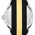 Мужские механические часы Certina DS-Action C0484071805101 — это надёжный аксессуар, созданный для тех, кто ценит сочетание швейцарского качества, функциональности и стиля. Модель входит в коллекцию Aqua, что подчёркивает её предназначение для водных активностей. Корпус диаметром 40,5 мм выполнен из нержавеющей стали с чёрной керамической рамкой, которая не только придаёт модели спортивный вид, но и защищает механизм от царапин. Циферблат чёрного цвета дополнен люминесцентными стрелками и индексами, обеспечивающими отличную читаемость даже в условиях слабого освещения. Защиту механизма обеспечивает сапфировое стеклоСапфировое стеклоПрочный и надёжный материал из кристалла сапфира синтетического происхождения, характеризующийся особой твёрдостью и устойчивостью к царапинам и повреждениям. с антибликовым покрытиемАнтибликовое покрытиеСлой оксида металла в 0,13-0,3 микрон, благодаря которому стекло часов не бликует и не отражает свет. Антибликовое покрытие уменьшает отражение света в 10 раз, обеспечивая отличную читаемость показателей циферблата., устойчивое к повреждениям. Часы оснащены автоматическим механизмом с запасом хода до 80 часов и пружиной баланса Nivachron™, что гарантирует высокую точность и долговечность. Функция отображения времени (часы, минуты, секунды) и даты делает модель удобной для повседневного использования. Водонепроницаемость позволяет использовать часы на глубине до 300 метров — идеально для плавания и ныряния. Ремешок NATO чёрного и золотистого цвета застёгивается на булавку, обеспечивая комфорт и надёжную фиксацию на запястье. Концепция DS, лежащая в основе всех моделей бренда, обеспечивает двойную защиту от ударов и вибраций, а также повышенную устойчивость к внешним воздействиям. Эти часы станут универсальным аксессуаром для тех, кто ценит сочетание стиля, функциональности и надёжности — идеальный выбор для повседневной носки и активного образа жизни.