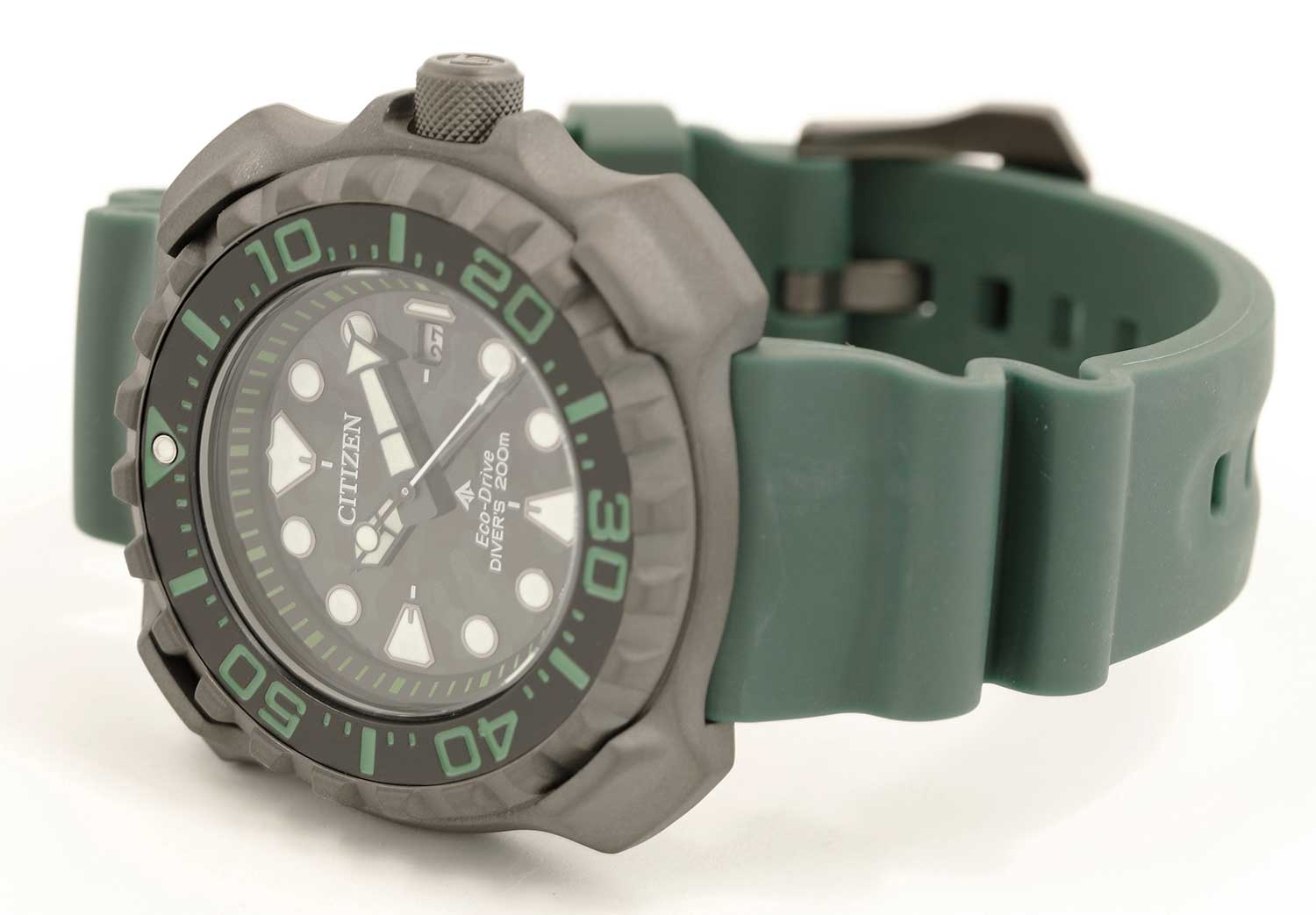 Мужские часы Citizen Promaster BN0228-06W дайверские часы станут верным спутником в вашей энергичной и спортивной жизни. Корпус из титана (Super Titanium) с DLC-покрытиемDLC-покрытиеDiamond like carbon - одно из лучших видов покрытия, представляющее собой углерод с алмазными свойствами. На поверхность материала наносятся распавшиеся молекулы углерода, превращающиеся в плёнку из алмазоподобных связей, которая перенимает твёрдость алмаза. диаметром 47,9 мм идеально сбалансирован. Минеральное стеклоМинеральное стеклоМинеральное стекло представляет собой искусственно выращенный минерал кварца. Такое стекло отличается особой устойчивостью к повреждениям и царапинам. Уступает по некоторым качествам сапфировому стеклу. обеспечивает отличную защиту циферблата от царапин. Часы работают на основе кварцевого механизма, питание от солнечной энергии, запас энергии на 180 дней. Полиуретановый ремешок на стандартной застёжке идеально дополняют дизайн часов, обеспечивая комфортное ношение. Стрелки и метки на циферблате имеют люминесцентное покрытиеЛюминесцентное покрытиеПозволяет считывать показания времени в темноте. Производители наносят на стрелки, часовые индексы, безель или поверхность циферблата светонакопительный состав, дающий холодное свечение. позволяющее легко определять время даже в темноте. Титановый безельБезельВнешний ободок, закрепляющий стекло. В спортивных часах так называется поворотное кольцо с делениями на циферблате, выполняет роль таймера – замеряет отрезки времени на шкале. Неподвижный безель – элемент декора. Однонаправленно вращающийся безель на дайверских часах позволяет фиксировать моменты погружения и выныривания на поверхность. с Duratect MRK покрытием вращается в одном направлении. Функция индикации заряда (EOL) и предотвращения перезарядки. Окошко даты находится в положении 3 часа. Часы обладают впечатляющей водонепроницаемостью до 200WR, что делает их идеальными для плавания, ныряния и погружений с аквалангом.