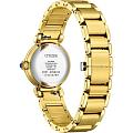 Элегантные японские часы Citizen EM1132-88H сочетают в себе современные технологии и изысканный дизайн. Кварцевый механизм Eco-Drive Caliber E031 обеспечивает высокую точность и не требует замены батареек, получая энергию от любого источника света. Корпус диаметром 26 мм и толщиной 8,1 мм выполнен из прочной нержавеющей стали с золотистым IP-покрытиемIP-покрытиеМетод ионного напыления. Демонстрирует повышенную устойчивость к истиранию, окислению и химическим веществам. Под воздействием высокого давления и температуры около 1500°C молекулы металла надёжно соединяются с частицами корпуса часов., вес модели составляет 70 гр. Сапфировое стеклоСапфировое стеклоПрочный и надёжный материал из кристалла сапфира синтетического происхождения, характеризующийся особой твёрдостью и устойчивостью к царапинам и повреждениям. отличается высокой устойчивостью к царапинам и мелким повреждениям. Черный циферблат украшен арабскими цифрами и аккуратными метками в виде точек. Центральные часовая, минутная и секундная стрелки обеспечивают удобное считывание времени. Стальной браслет с золотистым IP-покрытиемIP-покрытиеМетод ионного напыления. Демонстрирует повышенную устойчивость к истиранию, окислению и химическим веществам. Под воздействием высокого давления и температуры около 1500°C молекулы металла надёжно соединяются с частицами корпуса часов. оснащён надёжной застежкой «бабочка»Застёжка "бабочка"Такой вид застёжки дополняется предохранителями, помогающими избежать случайного раскрытия браслета. Обладают изящным исполнением. . Водонепроницаемость на уровне WR 50 позволяет не снимать часы во время мытья рук или прогулок под дождём.