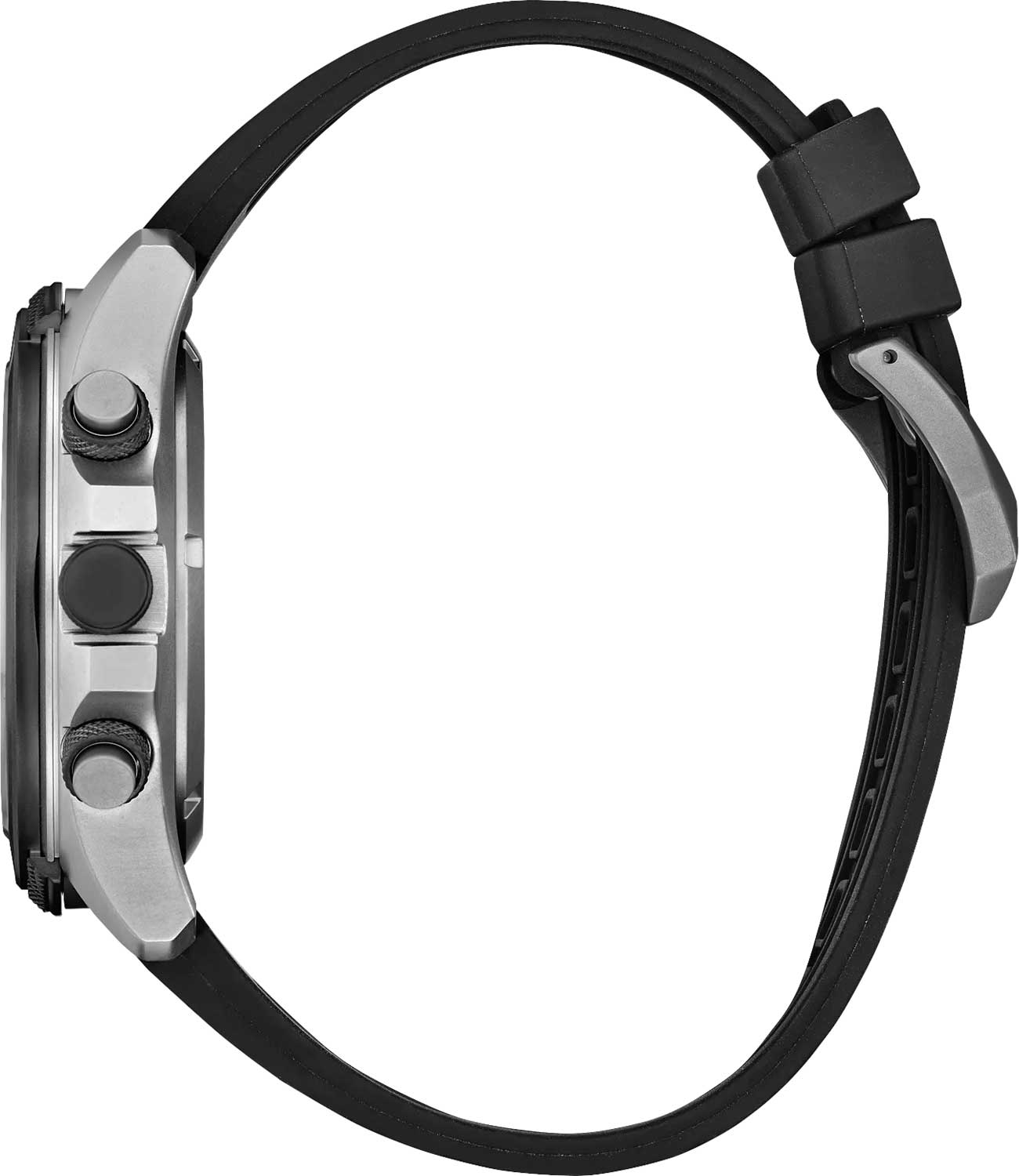 Citizen Promaster JV1007-07E часы-хронографХронографФункция позволяет измерять отрезки времени с особой точностью: часы, минуты, секунды. Верным признаком хронографа является наличие на циферблате 3 дополнительных окошек-счётчиков. с секундомеромСекундомерСекундоме́р — прибор, способный измерять интервалы времени с точностью до долей секунды. спортивного дизайна с высоким уровнем водозащиты. Корпус из нержавеющей стали диаметром 43,9 мм идеально сбалансирован. Сапфировое стеклоСапфировое стеклоПрочный и надёжный материал из кристалла сапфира синтетического происхождения, характеризующийся особой твёрдостью и устойчивостью к царапинам и повреждениям. с антибликовым покрытием обеспечивает отличную защиту циферблата от царапин. Часы работают на основе кварцевого механизма, питание от солнечной энергии, запас энергии на 360 дней. Время работы при полной зарядке и включенной функции сохранения энергии до 3 лет. Полиуретановый ремешок на стандартной застежке идеально дополняют дизайн часов, обеспечивая комфортное ношение. Стрелки и метки на циферблате имеют люминесцентное покрытиеЛюминесцентное покрытиеПозволяет считывать показания времени в темноте. Производители наносят на стрелки, часовые индексы, безель или поверхность циферблата светонакопительный состав, дающий холодное свечение. позволяющее легко определять время даже в темноте. LCD дисплей с светодиодной подсветкойСветодиодная подсветкаСветодиодная или LED-подсветка обеспечивает появление яркого холодного свечения за счёт LED-элементов - маленьких лампочек. Они потребляют минимальное количество энергии, чаще всего можно встретить 1 светодиод, в нижней части циферблата.. Вращающийся внутренний безельБезельВнешний ободок, закрепляющий стекло. В спортивных часах так называется поворотное кольцо с делениями на циферблате, выполняет роль таймера – замеряет отрезки времени на шкале. Неподвижный безель – элемент декора. Однонаправленно вращающийся безель на дайверских часах позволяет фиксировать моменты погружения и выныривания на поверхность. с IP-покрытиемIP-покрытиеМетод ионного напыления. Демонстрирует повышенную устойчивость к истиранию, окислению и химическим веществам. Под воздействием высокого давления и температуры около 1500°C молекулы металла надёжно соединяются с частицами корпуса часов. со шкалой компаса. Функция индикации заряда (EOL) и предотвращения перезарядки. Мировое времяМировое время Полезное часовое усложнение, отображающее время в основных городах и известных областях по всему миру, оно связано с часовыми поясами, удобно для путешественников и бизнесменов. - 43 города (29 часовых поясов), переход на зимнее и летнее время. Сплит-хронографСплит-хронографИспользуется для измерения продолжительности нескольких временных отрезков, начинающихся одновременно, а заканчивающихся в разное время.. ТаймерТаймерОтсчитывает секунды в обратном направлении в заданном интервале времени. обратного отсчета до 100мин. Всемирное координированное время UTCUTCВсемирное кординационное время, не имеющее привязки к географическому положению Гринвича, основывается на атомном отсчёте времени. Регулировка времени осуществляется более точно, чем устаревшее GMT.