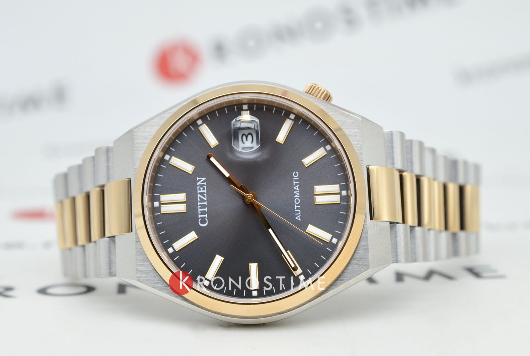 Citizen Tsuyosa NJ0154-80H - идеальное сочетание классического и современного дизайна. Корпус из нержавеющей стали диаметром 40 мм идеально сбалансирован. Сапфировое стеклоСапфировое стеклоПрочный и надёжный материал из кристалла сапфира синтетического происхождения, характеризующийся особой твёрдостью и устойчивостью к царапинам и повреждениям. с антибликовым покрытием обеспечивает отличную защиту циферблата от царапин. Механические часы с автоподзаводом. Стальной браслет на раскладной застёжкеРаскладная застёжкаТакой тип застёжки используется только на браслетах из металла. Она никогда не раскрывается полностью, происходит разделение на 2 и более частей. Раскладывающая застёжка снизит вероятность потери часов к минимуму. с частичным IP-покрытиемIP-покрытиеМетод ионного напыления. Демонстрирует повышенную устойчивость к истиранию, окислению и химическим веществам. Под воздействием высокого давления и температуры около 1500°C молекулы металла надёжно соединяются с частицами корпуса часов. идеально дополняют дизайн часов, обеспечивая комфортное ношение. Метки в виде штрихов. Окошко даты в положении 3 часа. Стрелки и метки с люминесцентным покрытиемЛюминесцентное покрытиеПозволяет считывать показания времени в темноте. Производители наносят на стрелки, часовые индексы, безель или поверхность циферблата светонакопительный состав, дающий холодное свечение.. В механизме 21 камень, частота 21600 полуколебаний в час. Запас хода 42 часа. Рифленая заводная головка находится в положении 4 часа. БезельБезельВнешний ободок, закрепляющий стекло. В спортивных часах так называется поворотное кольцо с делениями на циферблате, выполняет роль таймера – замеряет отрезки времени на шкале. Неподвижный безель – элемент декора. Однонаправленно вращающийся безель на дайверских часах позволяет фиксировать моменты погружения и выныривания на поверхность. с IP-покрытиемIP-покрытиеМетод ионного напыления. Демонстрирует повышенную устойчивость к истиранию, окислению и химическим веществам. Под воздействием высокого давления и температуры около 1500°C молекулы металла надёжно соединяются с частицами корпуса часов.. Циферблат с метками в виде штрихов выполнен по технологии Sunray (солнечные лучи). Завинчивающаяся прозрачная задняя крышка. Часы обладают водонепроницаемостью до 50WR, что делает их идеальными для повседневной носки.