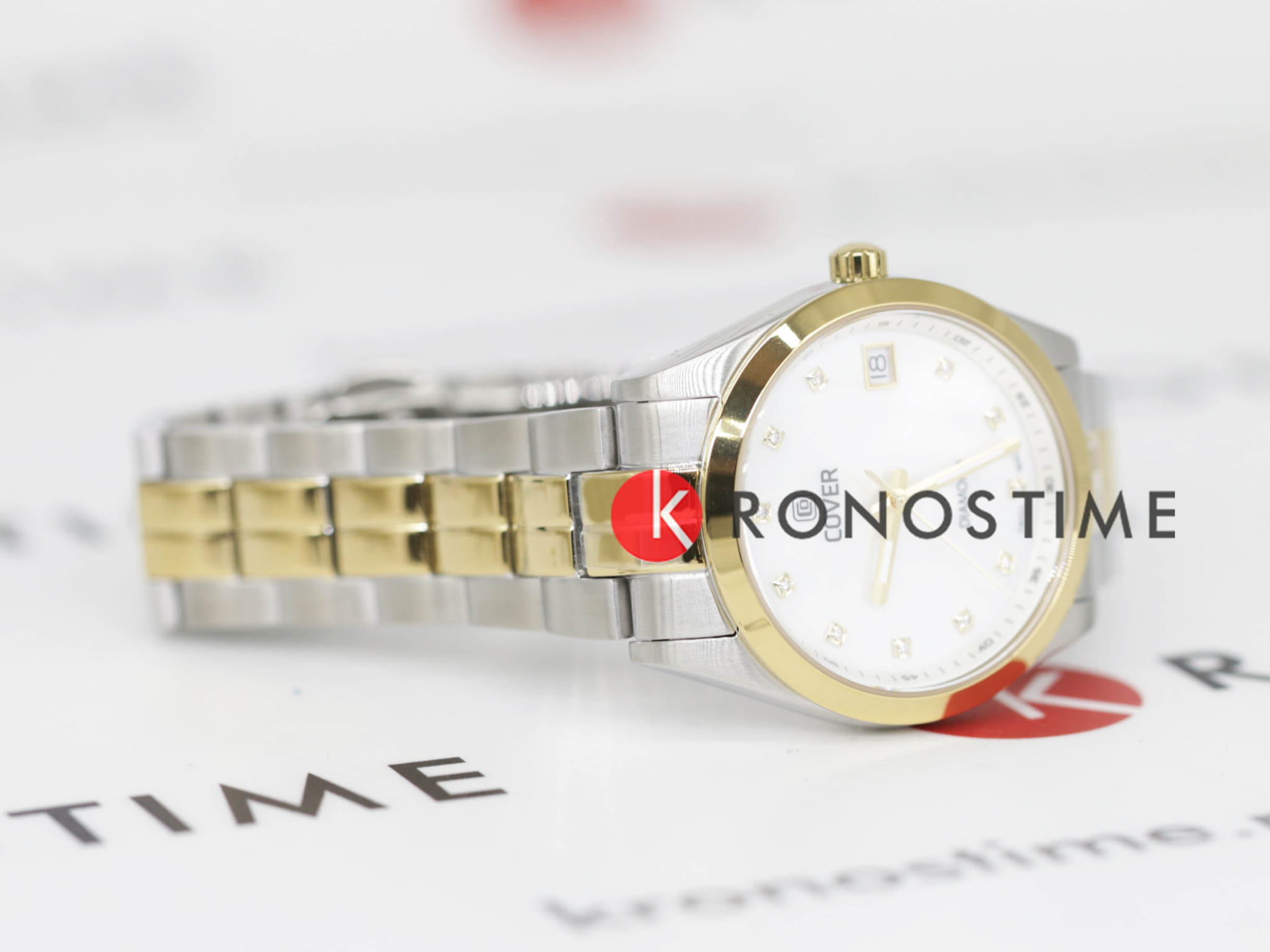 Представляем женские швейцарские часы Cover из коллекции Andara Diamond, модель CO210.04 — воплощение элегантности и роскоши. Эта уникальная модель украшена синтетическими бриллиантами, которые гармонично сочетаются с серебристым циферблатом, создавая ослепительную игру света на запястье. Стальной корпус диаметром 35 мм выполнен в пропорциональных размерах, что делает часы удобными для повседневного ношения. БезельБезельВнешний ободок, закрепляющий стекло. В спортивных часах так называется поворотное кольцо с делениями на циферблате, выполняет роль таймера – замеряет отрезки времени на шкале. Неподвижный безель – элемент декора. Однонаправленно вращающийся безель на дайверских часах позволяет фиксировать моменты погружения и выныривания на поверхность. с PVD-покрытиемPVDУльтратонкое покрытие наносится в технике вакуумного напыления, сочетает в себе нитрид титана особой прочности со слоем золота или оксида хрома. Несёт в себе декоративную или защитную функцию.. Циферблат защищен прочным сапфировым стекломСапфировое стеклоПрочный и надёжный материал из кристалла сапфира синтетического происхождения, характеризующийся особой твёрдостью и устойчивостью к царапинам и повреждениям., устойчивым к царапинам и обеспечивающим идеальную читаемость времени даже при ярком свете. Модель имеет водонепроницаемость до 10 АТМ, что позволяет использовать часы во время плавания или занятий водными видами спорта. Однако важно помнить, что во время погружения рекомендуется не нажимать кнопки и не пользоваться заводной головкой. Стальной браслет с частичным PVD-покрытиемPVDУльтратонкое покрытие наносится в технике вакуумного напыления, сочетает в себе нитрид титана особой прочности со слоем золота или оксида хрома. Несёт в себе декоративную или защитную функцию. на застёжке-бабочке с кнопкамиЗастёжка "бабочка"Такой вид застёжки дополняется предохранителями, помогающими избежать случайного раскрытия браслета. Обладают изящным исполнением. .