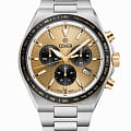 Мужские наручные часы-хронографХронографФункция позволяет измерять отрезки времени с особой точностью: часы, минуты, секунды. Верным признаком хронографа является наличие на циферблате 3 дополнительных окошек-счётчиков. Cover CO212.08 из коллекции Iconosteel сочетают в себе классический дизайн и надежность современных технологий. Часы оснащены кварцевым механизмом с модулем хронографа Ronda 5040.D, они обеспечивают точность и надежность в каждом моменте. Модель обладает круглым корпусом диаметром 41 мм, изготовленным из нержавеющей стали, что обеспечивает высокую устойчивость к внешним воздействиям. Браслет выполнен из нержавеющей стали с раскладной застёжкойРаскладная застёжкаТакой тип застёжки используется только на браслетах из металла. Она никогда не раскрывается полностью, происходит разделение на 2 и более частей. Раскладывающая застёжка снизит вероятность потери часов к минимуму., гарантирующей комфортное ношение и безопасность. Золотистый циферблат оснащен окном даты на «4 часах» и стрелками с люминесцентным покрытиемЛюминесцентное покрытиеПозволяет считывать показания времени в темноте. Производители наносят на стрелки, часовые индексы, безель или поверхность циферблата светонакопительный состав, дающий холодное свечение.. Для защиты используется сапфировое стеклоСапфировое стеклоПрочный и надёжный материал из кристалла сапфира синтетического происхождения, характеризующийся особой твёрдостью и устойчивостью к царапинам и повреждениям., обеспечивающее прочную защиту от царапин и антибликовый эффект. На черный безельБезельВнешний ободок, закрепляющий стекло. В спортивных часах так называется поворотное кольцо с делениями на циферблате, выполняет роль таймера – замеряет отрезки времени на шкале. Неподвижный безель – элемент декора. Однонаправленно вращающийся безель на дайверских часах позволяет фиксировать моменты погружения и выныривания на поверхность. с PVD-покрытиемPVDУльтратонкое покрытие наносится в технике вакуумного напыления, сочетает в себе нитрид титана особой прочности со слоем золота или оксида хрома. Несёт в себе декоративную или защитную функцию. нанесена шкала тахиметраТахиметрРазмеченная шкала, располагается на ободке или безеле часов. Тахиметр позволяет рассчитать скорость на определённом участке пути, расстояние измеряется в километрах или милях.. Модель также является хронографом, оснащенным функцией секундомераСекундомерСекундоме́р — прибор, способный измерять интервалы времени с точностью до долей секунды., делая ее идеальной для активного образа жизни. Водонепроницаемость часов достигает 10 атмосфер (100 метров), что позволяет использовать их во время плавания и других водных видов спорта, однако не рекомендуется для глубоководного дайвинга.