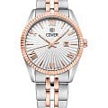 Часы COVER CO217.10 из коллекции Alston – элегантная модель швейцарского производства. Эти часы станут идеальным аксессуаром для элегантных дам, которые ценят стиль и качество. Браслет с раскладной застёжкойРаскладная застёжкаТакой тип застёжки используется только на браслетах из металла. Она никогда не раскрывается полностью, происходит разделение на 2 и более частей. Раскладывающая застёжка снизит вероятность потери часов к минимуму. и безельБезельВнешний ободок, закрепляющий стекло. В спортивных часах так называется поворотное кольцо с делениями на циферблате, выполняет роль таймера – замеряет отрезки времени на шкале. Неподвижный безель – элемент декора. Однонаправленно вращающийся безель на дайверских часах позволяет фиксировать моменты погружения и выныривания на поверхность. изготовлены из нержавеющей стали с PVDPVDУльтратонкое покрытие наносится в технике вакуумного напыления, сочетает в себе нитрид титана особой прочности со слоем золота или оксида хрома. Несёт в себе декоративную или защитную функцию. покрытием золотого цвета, корпус имеет диаметр 30 мм. На серебристым циферблате расположены накладные римские цифры. Надежное минеральное стеклоМинеральное стеклоМинеральное стекло представляет собой искусственно выращенный минерал кварца. Такое стекло отличается особой устойчивостью к повреждениям и царапинам. Уступает по некоторым качествам сапфировому стеклу. защищает часы от царапин и долго сохраняет первоначальный внешний вид. Они показывают день месяца, индикатор которых с накладной рамкой расположен в положении «3 часа». Водозащита 50 метров делает часы практичными для повседневного использования. На часовую, минутную стрелки нанесено люминесцентное покрытиеЛюминесцентное покрытиеПозволяет считывать показания времени в темноте. Производители наносят на стрелки, часовые индексы, безель или поверхность циферблата светонакопительный состав, дающий холодное свечение., которое светится в темноте, создавая необычное изображение. Эти часы идеально подойдут для светских раутов, бизнес-встреч и других важных событий, подчеркнут вашу элегантность и статус.