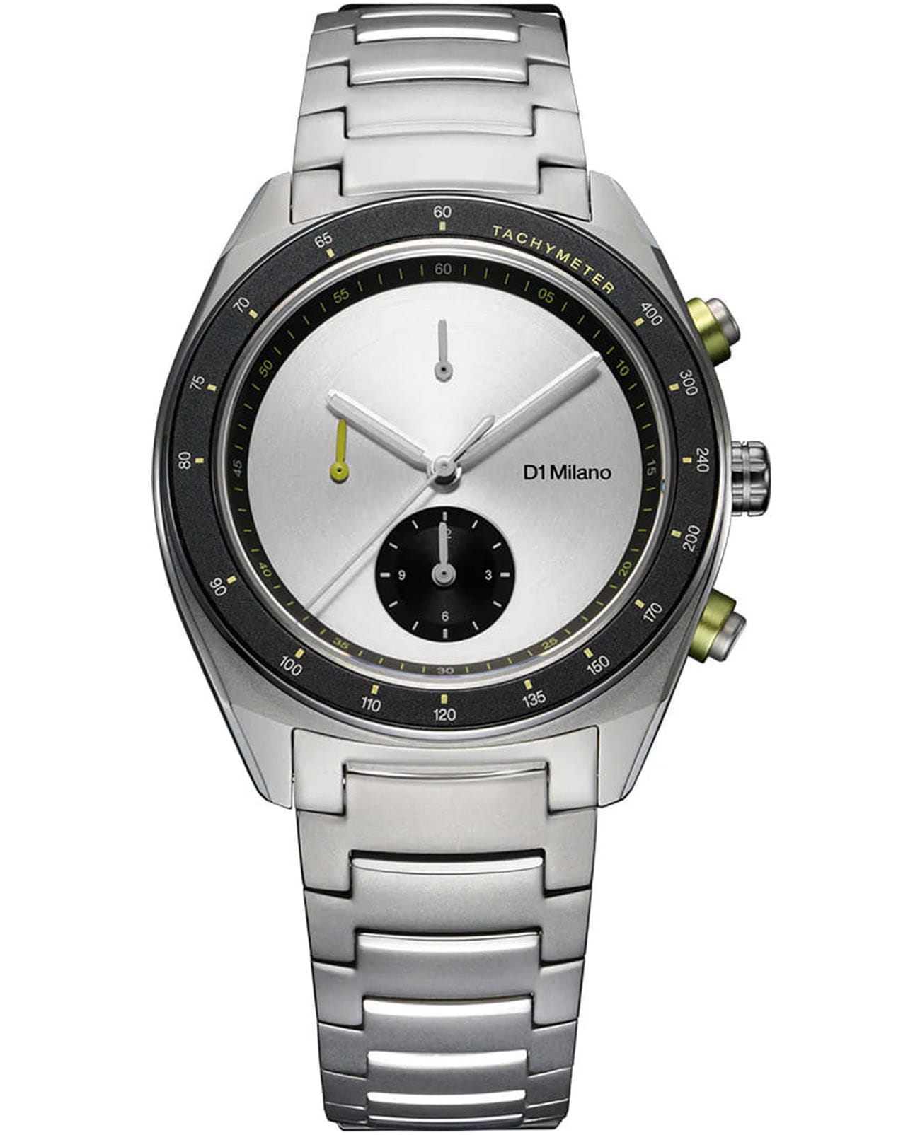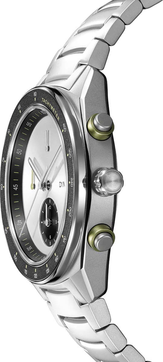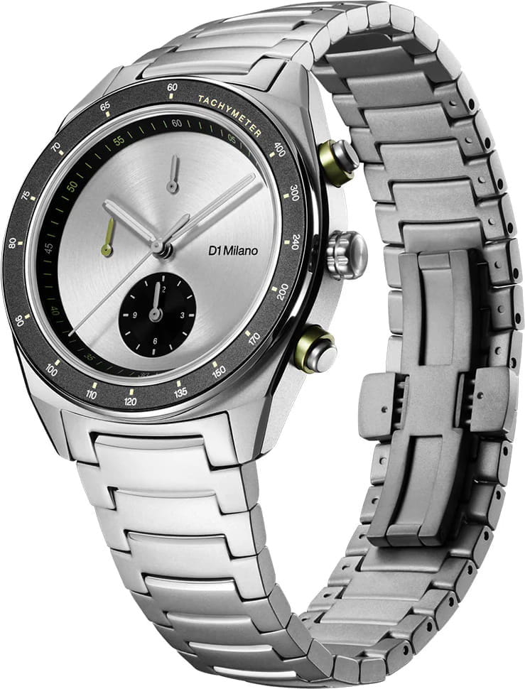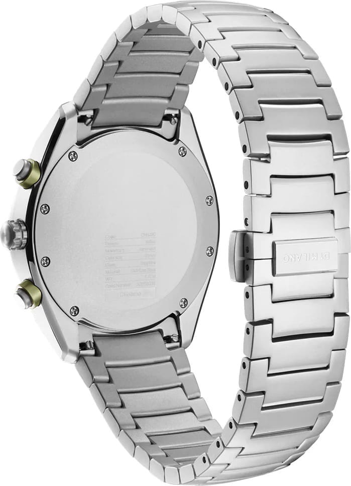 Элегантный хронограф D1 Milano Cronografo Essential White CHBJ20 - идеальное воплощение мужественности и стиля. Этот многофункциональный аксессуар оснащен секундомером, тахиметромТахиметрРазмеченная шкала, располагается на ободке или безеле часов. Тахиметр позволяет рассчитать скорость на определённом участке пути, расстояние измеряется в километрах или милях.. что делает его незаменимым компаньоном в повседневной жизни. Изысканный корпус и браслет выполнены из стали. Неподвижный безельБезельВнешний ободок, закрепляющий стекло. В спортивных часах так называется поворотное кольцо с делениями на циферблате, выполняет роль таймера – замеряет отрезки времени на шкале. Неподвижный безель – элемент декора. Однонаправленно вращающийся безель на дайверских часах позволяет фиксировать моменты погружения и выныривания на поверхность. из нержавеющей стали с PVD-покрытиемPVDУльтратонкое покрытие наносится в технике вакуумного напыления, сочетает в себе нитрид титана особой прочности со слоем золота или оксида хрома. Несёт в себе декоративную или защитную функцию.. Минималистичный дизайн циферблата, защищенный прочным сапфировым стекломСапфировое стеклоПрочный и надёжный материал из кристалла сапфира синтетического происхождения, характеризующийся особой твёрдостью и устойчивостью к царапинам и повреждениям. с антибликовым покрытиемАнтибликовое покрытиеСлой оксида металла в 0,13-0,3 микрон, благодаря которому стекло часов не бликует и не отражает свет. Антибликовое покрытие уменьшает отражение света в 10 раз, обеспечивая отличную читаемость показателей циферблата., привлекает внимание своей сдержанной красотой. Стрелки с люминесцентным покрытиемЛюминесцентное покрытиеПозволяет считывать показания времени в темноте. Производители наносят на стрелки, часовые индексы, безель или поверхность циферблата светонакопительный состав, дающий холодное свечение., обеспечивающим хорошую читаемость в темноте. Надежная конструкция с задней крышкой на 8 винтах и стильный браслет с удобной застёжкой «бабочка» с кнопкамиЗастёжка "бабочка"Такой вид застёжки дополняется предохранителями, помогающими избежать случайного раскрытия браслета. Обладают изящным исполнением. обеспечивают комфорт при ношении. Водозащита 50 метров защищает часы от брызг и дождя, делая их подходящими для повседневного использования.  Это не просто часы, а статусный аксессуар, подчеркивающий безупречный вкус и внимание к деталям своего владельца.