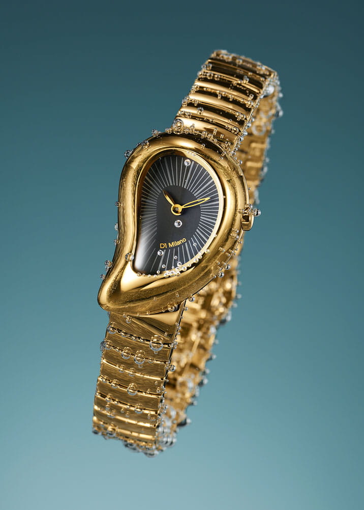 Женские кварцевые часы D1 Milano Drop DRBL02 — это стильное сочетание элегантности и современного дизайна. Стальной корпус в форме капли выполнен из нержавеющей стали с PVD-покрытиемPVDУльтратонкое покрытие наносится в технике вакуумного напыления, сочетает в себе нитрид титана особой прочности со слоем золота или оксида хрома. Несёт в себе декоративную или защитную функцию., диаметром 23 мм, что придаст образу элегантности и надежности. Изысканный циферблат с метками в виде штрихов придает модели особый блеск. Циферблат защищен сапфировым стекломСапфировое стеклоПрочный и надёжный материал из кристалла сапфира синтетического происхождения, характеризующийся особой твёрдостью и устойчивостью к царапинам и повреждениям. с антибликовым покрытиемАнтибликовое покрытиеСлой оксида металла в 0,13-0,3 микрон, благодаря которому стекло часов не бликует и не отражает свет. Антибликовое покрытие уменьшает отражение света в 10 раз, обеспечивая отличную читаемость показателей циферблата., обеспечивающий устойчивость к царапинам. Часы оснащены надежным кварцевым механизмом. Стальной браслет с PVD-покрытиемPVDУльтратонкое покрытие наносится в технике вакуумного напыления, сочетает в себе нитрид титана особой прочности со слоем золота или оксида хрома. Несёт в себе декоративную или защитную функцию. на застёжке-бабочке с кнопкамиЗастёжка "бабочка"Такой вид застёжки дополняется предохранителями, помогающими избежать случайного раскрытия браслета. Обладают изящным исполнением. , гарантирует комфортное и безопасное ношение. Класс водозащиты: 50 метров позволит защитить корпус от случайных брызг или капель дождя. Отличный выбор для тех, кто ценит утонченность и качество.