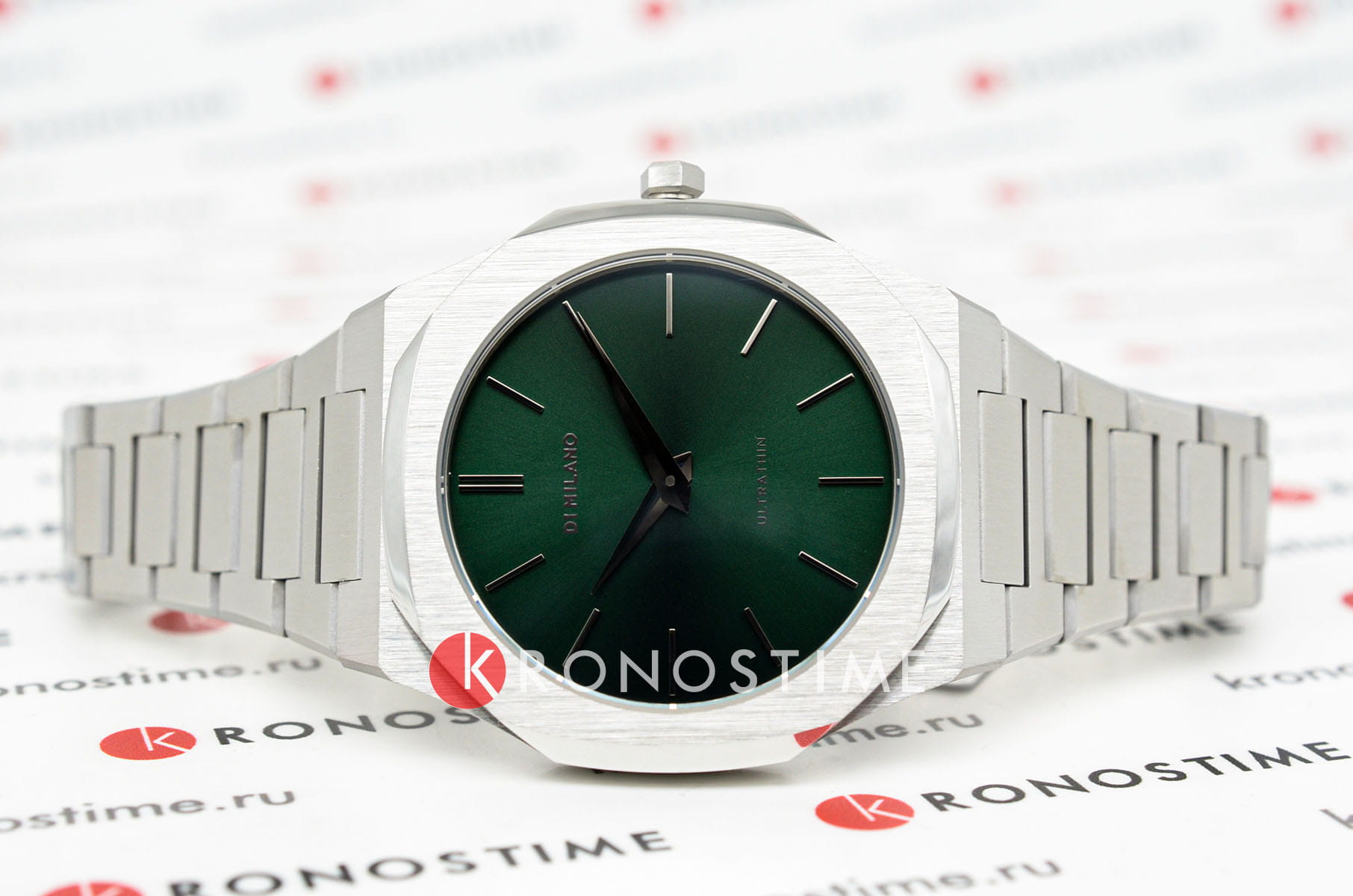 Часы D1 Milano UTBJ37 — это уникальные кварцевые часы, которые подчеркнут ваш изысканный стиль. Эти наручные часы из коллекции Ultra Thin с эффектным монохромным дизайном станут выразительным акцентом вашего образа. Корпус диаметром 40 мм из нержавеющей стали придает часам современный и утонченный вид. Зеленый циферблат метками в виде штрихов, а серебристые хроматические стрелки и индексы создают стильный контраст, подчёркивая элегантность модели. Задняя крышка из нержавеющей стали закреплена на 8-х винтах и дополнена индивидуальным серийным номером, что подчеркивает уникальность каждого экземпляра. Стальной браслет с раскладной застёжкойРаскладная застёжкаТакой тип застёжки используется только на браслетах из металла. Она никогда не раскрывается полностью, происходит разделение на 2 и более частей. Раскладывающая застёжка снизит вероятность потери часов к минимуму. обеспечивает надежность и комфорт в повседневном использовании. Сапфировое стеклоСапфировое стеклоПрочный и надёжный материал из кристалла сапфира синтетического происхождения, характеризующийся особой твёрдостью и устойчивостью к царапинам и повреждениям. с антибликовым покрытием защищает циферблат, а водозащита до 50WR делает эти часы практичным выбором для любых условий. Благодаря калибру Miyota 1L22, они отличаются точностью и надежностью. Эти итальянские часы представляют собой идеальное сочетание традиционного мастерства и инновационного подхода, воплощая в себе новый взгляд на классическую элегантность.