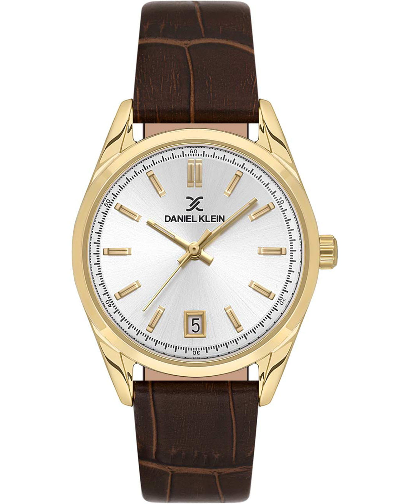 Женские кварцевые часы Daniel Klein — это элегантный аксессуар с классическими чертами. Корпус диаметром 32 мм выполнен из металла с IP-покрытиемIP-покрытиеМетод ионного напыления. Демонстрирует повышенную устойчивость к истиранию, окислению и химическим веществам. Под воздействием высокого давления и температуры около 1500°C молекулы металла надёжно соединяются с частицами корпуса часов.. Циферблат серебристого цвета выполнен по технологии Sunray («солнечные лучи») и оформлен штрихами и стрелками. Окошко даты расположено в положении 6 часов. Стрелки и метки с люминесцентным покрытиемЛюминесцентное покрытиеПозволяет считывать показания времени в темноте. Производители наносят на стрелки, часовые индексы, безель или поверхность циферблата светонакопительный состав, дающий холодное свечение., обеспечивающим хорошую читаемость в темноте. Циферблат защищён минеральным стекломМинеральное стеклоМинеральное стекло представляет собой искусственно выращенный минерал кварца. Такое стекло отличается особой устойчивостью к повреждениям и царапинам. Уступает по некоторым качествам сапфировому стеклу.. Часы оснащены кожаным ремешком на классической пряжке. Водонепроницаемость 30 м позволяет использовать часы в повседневных условиях. Идеальный выбор для тех, кто ценит турецкое качество и универсальный дизайн.