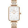 Daniel Wellington Quadro DW00100620 — элегантные женские часы с характерным скандинавским минимализмом. Прямоугольный корпус из нержавеющей стали с PVDPVDУльтратонкое покрытие наносится в технике вакуумного напыления, сочетает в себе нитрид титана особой прочности со слоем золота или оксида хрома. Несёт в себе декоративную или защитную функцию.-покрытием в цвете розового золота подчёркивает утончённость дизайна. Перламутровый циферблат украшен аккуратными метками-камнями, создающими изысканный блеск при каждом движении. Часы надёжно защищены минеральным стекломМинеральное стеклоМинеральное стекло представляет собой искусственно выращенный минерал кварца. Такое стекло отличается особой устойчивостью к повреждениям и царапинам. Уступает по некоторым качествам сапфировому стеклу., стойким к мелким повреждениям. Браслет из нержавеющей стали с утончённым плетением фиксируется с помощью застёжки «бабочка»Застёжка "бабочка"Такой вид застёжки дополняется предохранителями, помогающими избежать случайного раскрытия браслета. Обладают изящным исполнением. , которая обеспечивает комфорт и надёжность при носке. Модель работает на базе точного кварцевого механизма и подойдёт как для повседневных, так и для вечерних образов, подчеркивая индивидуальность своей обладательницы.