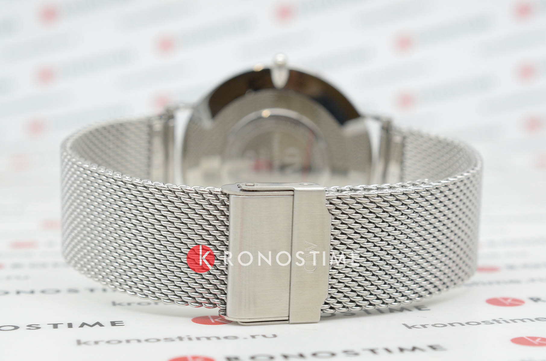 Стальной браслет миланского плетения на раскладном замкеРаскладной замокДанный вариант застежки используется только на часах с металлическим браслетом. Отличительная особенность такого крепления в том, что длина браслета становится универсальной и вы можете самостоятельно отрегулировать нужный вам размер – застежка просто двигается по браслету часов.. Внутри установлен кварцевый механизм, гарантирующий точность и бесперебойный ход.