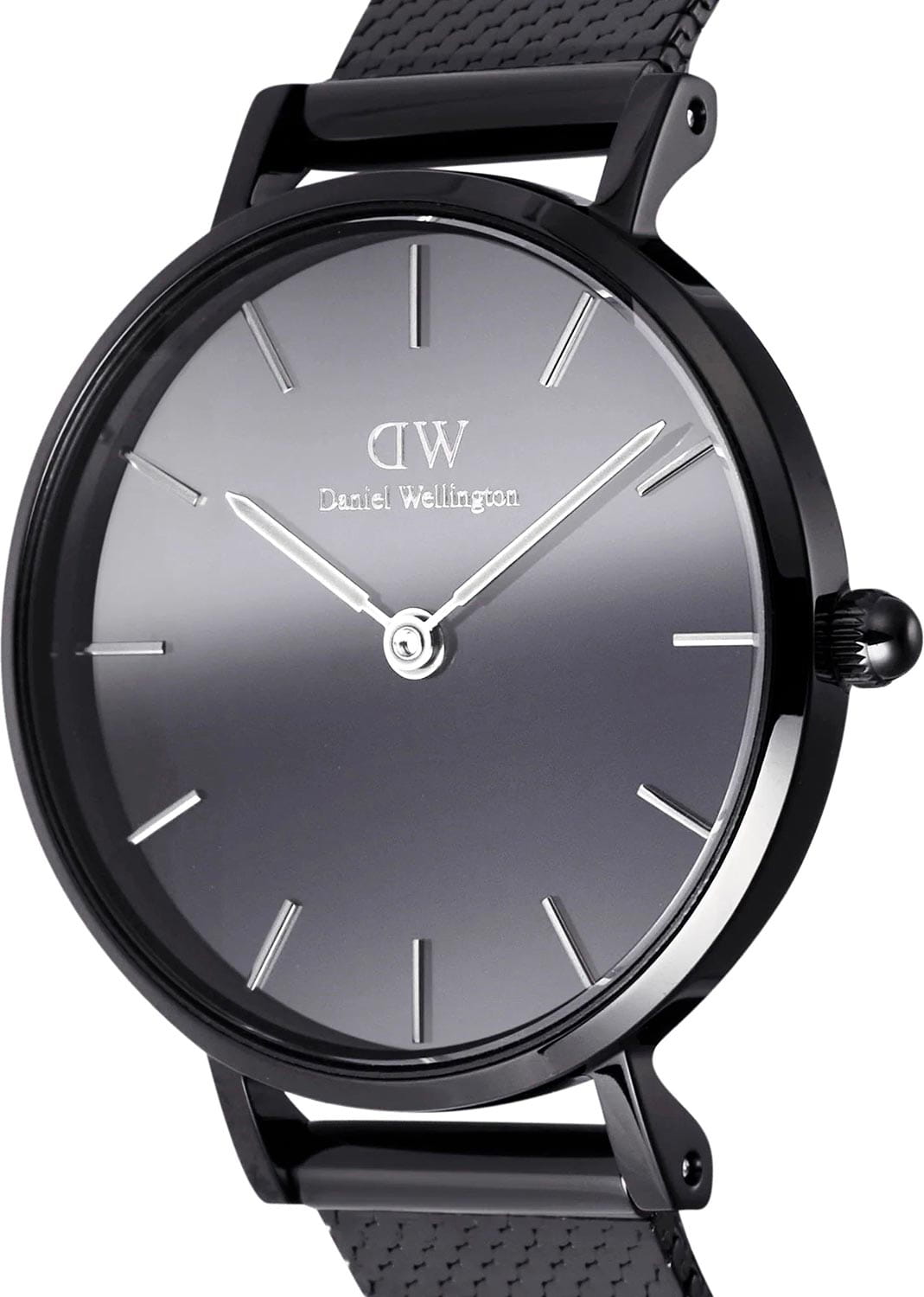 Daniel Wellington — женские часы, которые воплощают утончённый минимализм. Круглый корпус диаметром 28 мм выполнен из нержавеющей стали с глубоким чёрным PVDPVDУльтратонкое покрытие наносится в технике вакуумного напыления, сочетает в себе нитрид титана особой прочности со слоем золота или оксида хрома. Несёт в себе декоративную или защитную функцию.-покрытием, что придаёт образу современную строгость и элегантность.