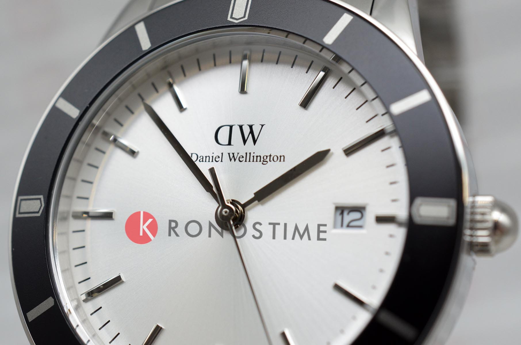 Daniel Wellington — мужские часы в современном спортивно-элегантном стиле. Круглый корпус диаметром 40 мм изготовлен из нержавеющей стали и дополнен чёрным безелемБезельВнешний ободок, закрепляющий стекло. В спортивных часах так называется поворотное кольцо с делениями на циферблате, выполняет роль таймера – замеряет отрезки времени на шкале. Неподвижный безель – элемент декора. Однонаправленно вращающийся безель на дайверских часах позволяет фиксировать моменты погружения и выныривания на поверхность. из анодированного алюминия, которое придаёт модели выразительный характер.