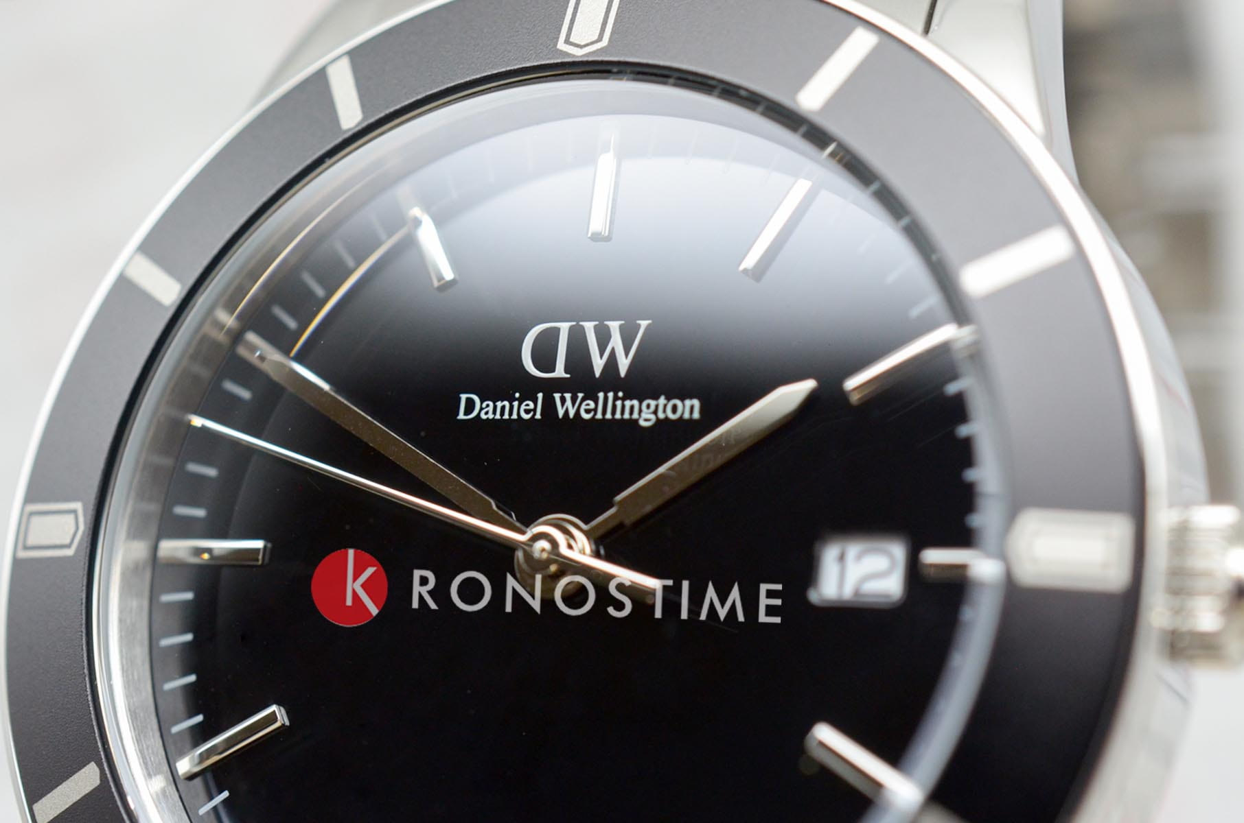 Daniel Wellington — мужские часы в современном спортивно-элегантном стиле. Круглый корпус диаметром 40 мм изготовлен из нержавеющей стали и дополнен чёрным безелемБезельВнешний ободок, закрепляющий стекло. В спортивных часах так называется поворотное кольцо с делениями на циферблате, выполняет роль таймера – замеряет отрезки времени на шкале. Неподвижный безель – элемент декора. Однонаправленно вращающийся безель на дайверских часах позволяет фиксировать моменты погружения и выныривания на поверхность. из анодированного алюминия, которое придаёт модели выразительный характер.
