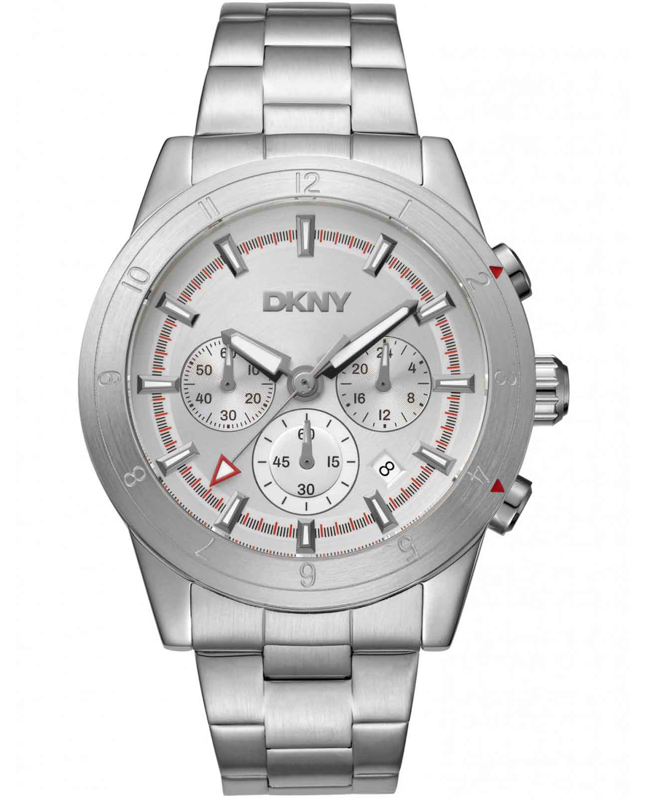 Мужские наручные часы DKNY Bryant Park Chrono DK1G051M0045 — воплощение современной урбанистической эстетики и технической точности. Корпус из нержавеющей стали диаметром 44 мм с минеральным стекломМинеральное стеклоМинеральное стекло представляет собой искусственно выращенный минерал кварца. Такое стекло отличается особой устойчивостью к повреждениям и царапинам. Уступает по некоторым качествам сапфировому стеклу. обеспечивает защиту от царапин, а водонепроницаемость до 100 метров делает модель практичной для плавания, активного отдыха или повседневной носки. Хронограф с точной тахиметрической шкалой и встроенный календарь подчеркивают функциональность. Браслет из нержавеющей стали на раскладной застёжкеРаскладная застёжкаТакой тип застёжки используется только на браслетах из металла. Она никогда не раскрывается полностью, происходит разделение на 2 и более частей. Раскладывающая застёжка снизит вероятность потери часов к минимуму. придает модели строгий, динамичный вид, подчеркивая статус и активный образ жизни. Циферблат с люминесцентным покрытиемЛюминесцентное покрытиеПозволяет считывать показания времени в темноте. Производители наносят на стрелки, часовые индексы, безель или поверхность циферблата светонакопительный состав, дающий холодное свечение. для четкой видимости.