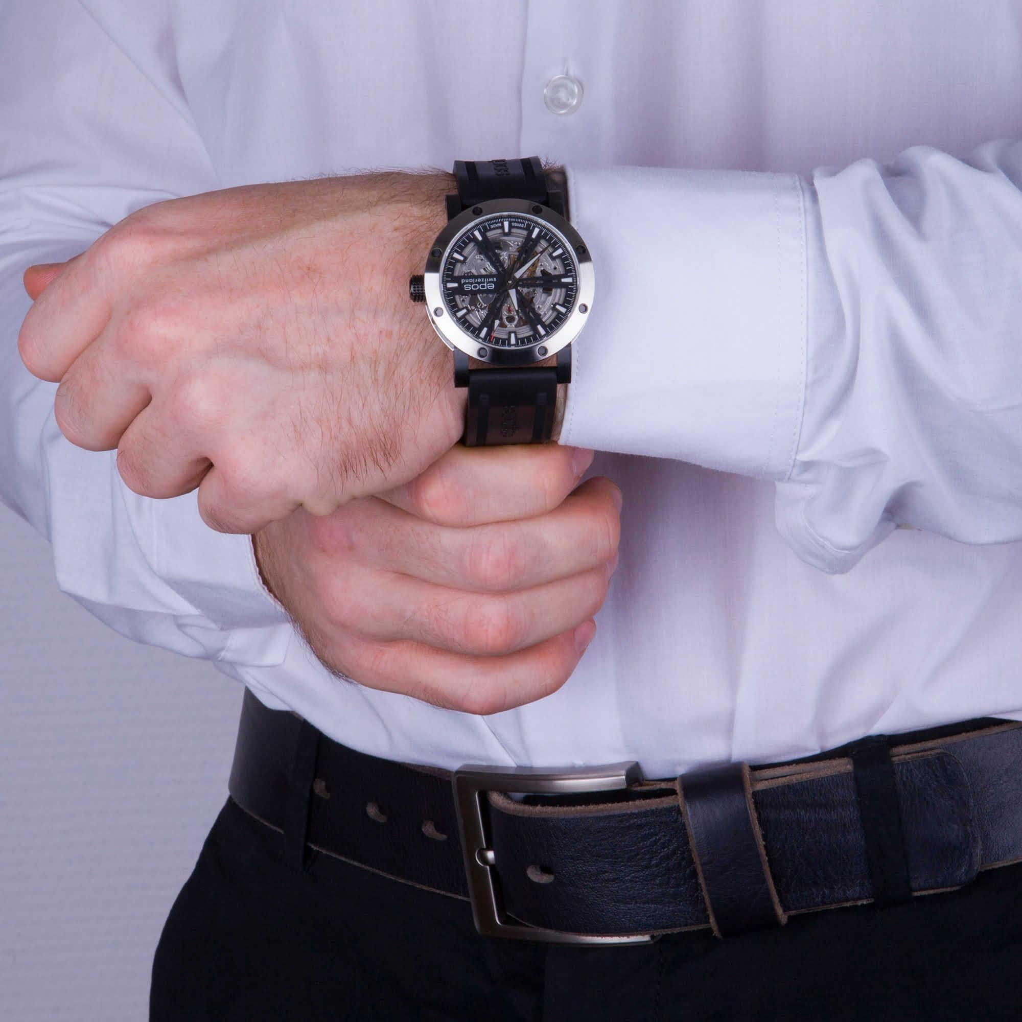 Мужские швейцарские механические наручные часы с автоподзаводом Epos Sportive 3422.135.60.15.55, механический механизм (автоматический калибр) с высокой точностью. Сапфировое стеклоСапфировое стеклоПрочный и надёжный материал из кристалла сапфира синтетического происхождения, характеризующийся особой твёрдостью и устойчивостью к царапинам и повреждениям. устойчивое к появлению царапин, обладающее высокой прозрачностью. Класс водозащиты: 50 метров, позволит защитить корпус от случайных брызг или капель дождя. Корпус часов изготовлен из стали. Силиконовый ремешок на стандартной застёжке. Стрелки и метки с люминесцентным покрытиемЛюминесцентное покрытиеПозволяет считывать показания времени в темноте. Производители наносят на стрелки, часовые индексы, безель или поверхность циферблата светонакопительный состав, дающий холодное свечение.. Прозрачная задняя крышка.