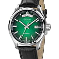 Мужские механические часы с автоподзаводом Epos из коллекции Passion — это сочетание швейцарского мастерства и современного дизайна. Корпус диаметром 41 мм и толщиной 11 мм выполнен из нержавеющей стали 316L. Циферблат зелёного цвета оформлен индексами и дополнен окошками даты и дня недели. Циферблат защищён сапфировым стекломСапфировое стеклоПрочный и надёжный материал из кристалла сапфира синтетического происхождения, характеризующийся особой твёрдостью и устойчивостью к царапинам и повреждениям.. Стрелки и метки с люминесцентным покрытиемЛюминесцентное покрытиеПозволяет считывать показания времени в темноте. Производители наносят на стрелки, часовые индексы, безель или поверхность циферблата светонакопительный состав, дающий холодное свечение., обеспечивающим хорошую читаемость в темноте. Прозрачная задняя крышка позволяет наблюдать за работой механизма. Часы оснащены кожаным ремешком чёрного цвета с раскладной застёжкойРаскладная застёжкаТакой тип застёжки используется только на браслетах из металла. Она никогда не раскрывается полностью, происходит разделение на 2 и более частей. Раскладывающая застёжка снизит вероятность потери часов к минимуму.. Водонепроницаемость 100 м позволяет использовать часы для плавания и повседневного ношения. Гарантия — 24 месяца. Универсальный выбор для ценителя механики и выразительного стиля.