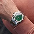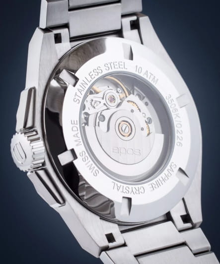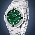 Мужские механические часы с автоподзаводом Epos из коллекции Sportive — это стильный и надёжный аксессуар с швейцарским качеством. Корпус диаметром 41 мм и толщиной 10,7 мм выполнен из нержавеющей стали 316L. Циферблат зелёного цвета оформлен рифлёным узором и метками в виде штрихов. Циферблат защищён сапфировым стекломСапфировое стеклоПрочный и надёжный материал из кристалла сапфира синтетического происхождения, характеризующийся особой твёрдостью и устойчивостью к царапинам и повреждениям.. Стрелки и метки с люминесцентным покрытиемЛюминесцентное покрытиеПозволяет считывать показания времени в темноте. Производители наносят на стрелки, часовые индексы, безель или поверхность циферблата светонакопительный состав, дающий холодное свечение., обеспечивающим хорошую читаемость в темноте. Механизм — швейцарский калибр ETA 2824. Окошко даты расположено в положении 3 часов. Завинчивающаяся коронка обеспечивает дополнительную защиту. Прозрачная задняя крышка позволяет наблюдать за работой декорированного механизма. Часы оснащены стальным браслетом на застёжке «бабочка» с кнопкамиЗастёжка "бабочка"Такой вид застёжки дополняется предохранителями, помогающими избежать случайного раскрытия браслета. Обладают изящным исполнением. . Водонепроницаемость 100 м позволяет использовать часы для плавания и повседневного ношения. Гарантия — 24 месяца. Универсальный выбор для ценителя механики и элегантного спортивного стиля.