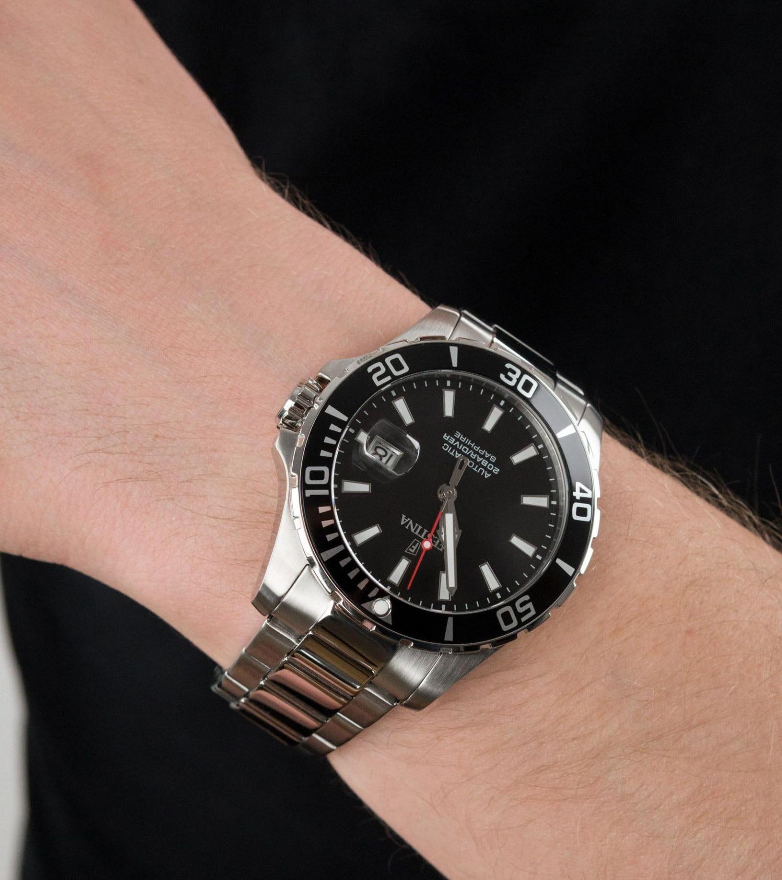 Мужские механические часы Festina Automatic F20531/4, механический механизм (автоматический калибр) с высокой точностью. Сапфировое стеклоСапфировое стеклоПрочный и надёжный материал из кристалла сапфира синтетического происхождения, характеризующийся особой твёрдостью и устойчивостью к царапинам и повреждениям. устойчивое к появлению царапин, обладающее высокой прозрачностью. Класс водозащиты: 200 метров, позволит плавать, нырять и заниматься другими водными видами спорта. Корпус часов изготовлен из стали. Стальной браслет на раскладной застёжкеРаскладная застёжкаТакой тип застёжки используется только на браслетах из металла. Она никогда не раскрывается полностью, происходит разделение на 2 и более частей. Раскладывающая застёжка снизит вероятность потери часов к минимуму.. Окошко даты находятся в положении 3 часа с увеличительным стеклом. Стрелки и метки с люминесцентным покрытиемЛюминесцентное покрытиеПозволяет считывать показания времени в темноте. Производители наносят на стрелки, часовые индексы, безель или поверхность циферблата светонакопительный состав, дающий холодное свечение., которое светится в темноте после непродолжительной зарядки на свету. Рифленая заводная головка. БезельБезельВнешний ободок, закрепляющий стекло. В спортивных часах так называется поворотное кольцо с делениями на циферблате, выполняет роль таймера – замеряет отрезки времени на шкале. Неподвижный безель – элемент декора. Однонаправленно вращающийся безель на дайверских часах позволяет фиксировать моменты погружения и выныривания на поверхность. с PVD-покрытиемPVDУльтратонкое покрытие наносится в технике вакуумного напыления, сочетает в себе нитрид титана особой прочности со слоем золота или оксида хрома. Несёт в себе декоративную или защитную функцию..