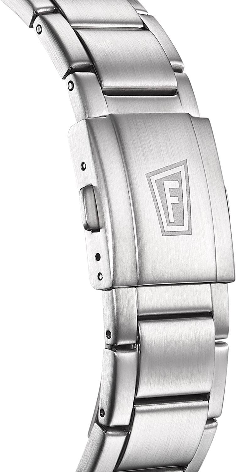 Часы-хронографХронографФункция позволяет измерять отрезки времени с особой точностью: часы, минуты, секунды. Верным признаком хронографа является наличие на циферблате 3 дополнительных окошек-счётчиков.. Кварцевый механизм с высокой точностью. Минеральное стеклоМинеральное стеклоМинеральное стекло представляет собой искусственно выращенный минерал кварца. Такое стекло отличается особой устойчивостью к повреждениям и царапинам. Уступает по некоторым качествам сапфировому стеклу. устойчивое к появлению царапин, обладающее высокой прозрачностью. Класс водозащиты: 100 метров, позволит плавать, нырять и заниматься другими водными видами спорта. Безель c PVD-покрытиемPVDУльтратонкое покрытие наносится в технике вакуумного напыления, сочетает в себе нитрид титана особой прочности со слоем золота или оксида хрома. Несёт в себе декоративную или защитную функцию.. Стрелки и метки с люминесцентным покрытиемЛюминесцентное покрытиеПозволяет считывать показания времени в темноте. Производители наносят на стрелки, часовые индексы, безель или поверхность циферблата светонакопительный состав, дающий холодное свечение.. Корпус часов изготовлен из нержавеющей стали. Браслет с раскладной застёжкойРаскладная застёжкаТакой тип застёжки используется только на браслетах из металла. Она никогда не раскрывается полностью, происходит разделение на 2 и более частей. Раскладывающая застёжка снизит вероятность потери часов к минимуму..