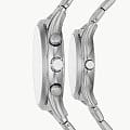 Мужские и женские наручные часы в комплекте Fossil Carlie BQ2468SET, кварцевый механизм с высокой точностью. Класс водозащиты: 50 метров, позволит защитить корпус от случайных брызг или капель дождя. Корпус часов изготовлен из стали, серебристого цвета.